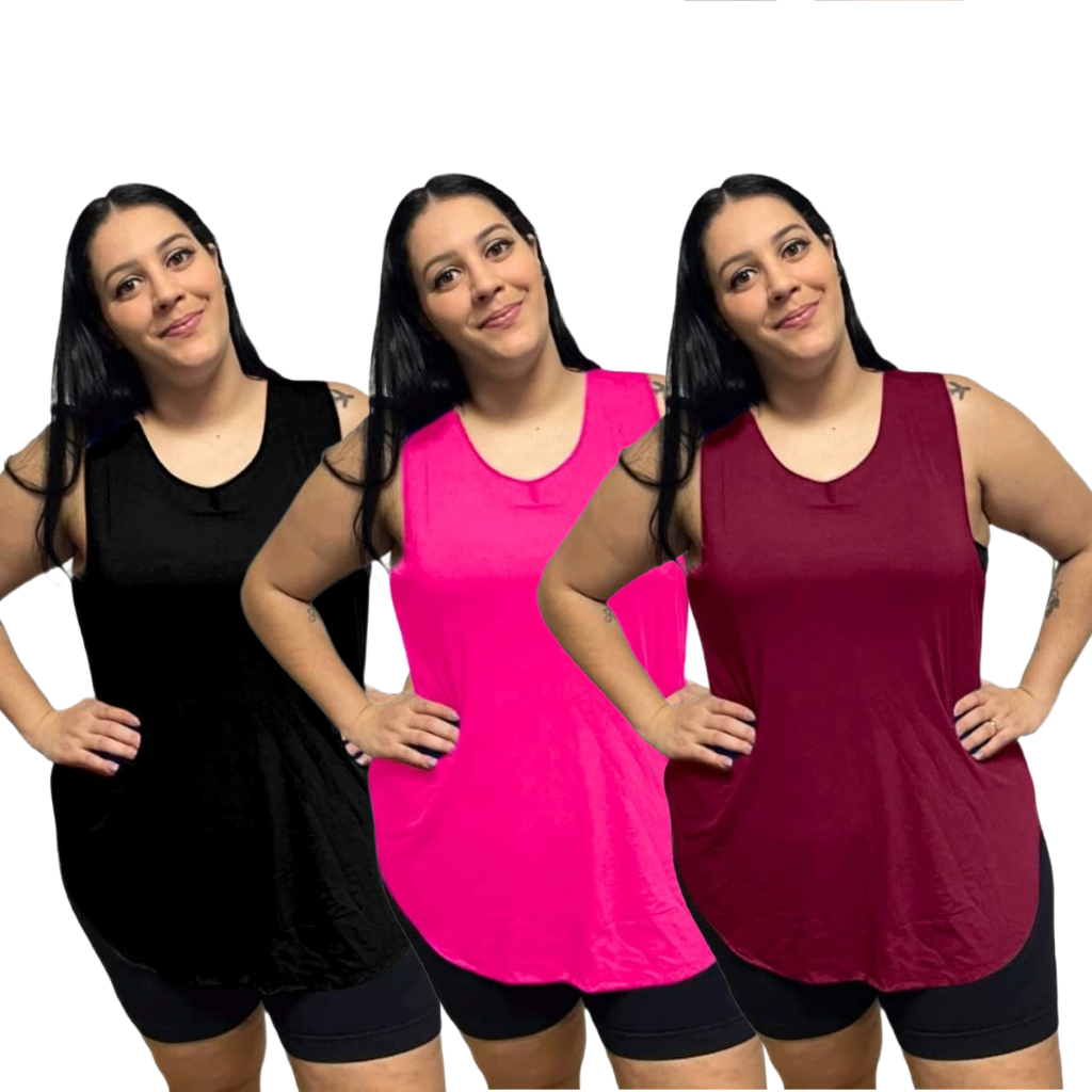 KIT 3 Regata Plus Size Feminina Tapabumbum Nadador Fitness Academia Viscolycra