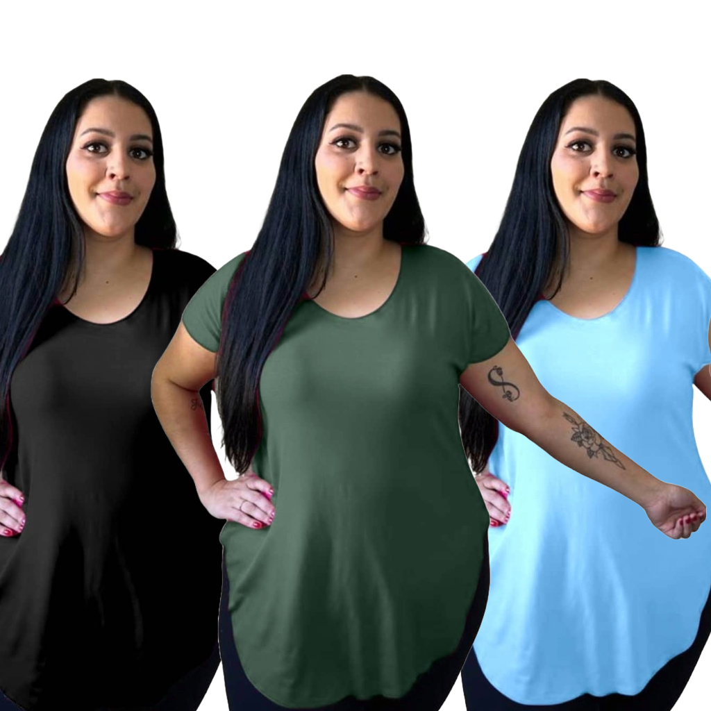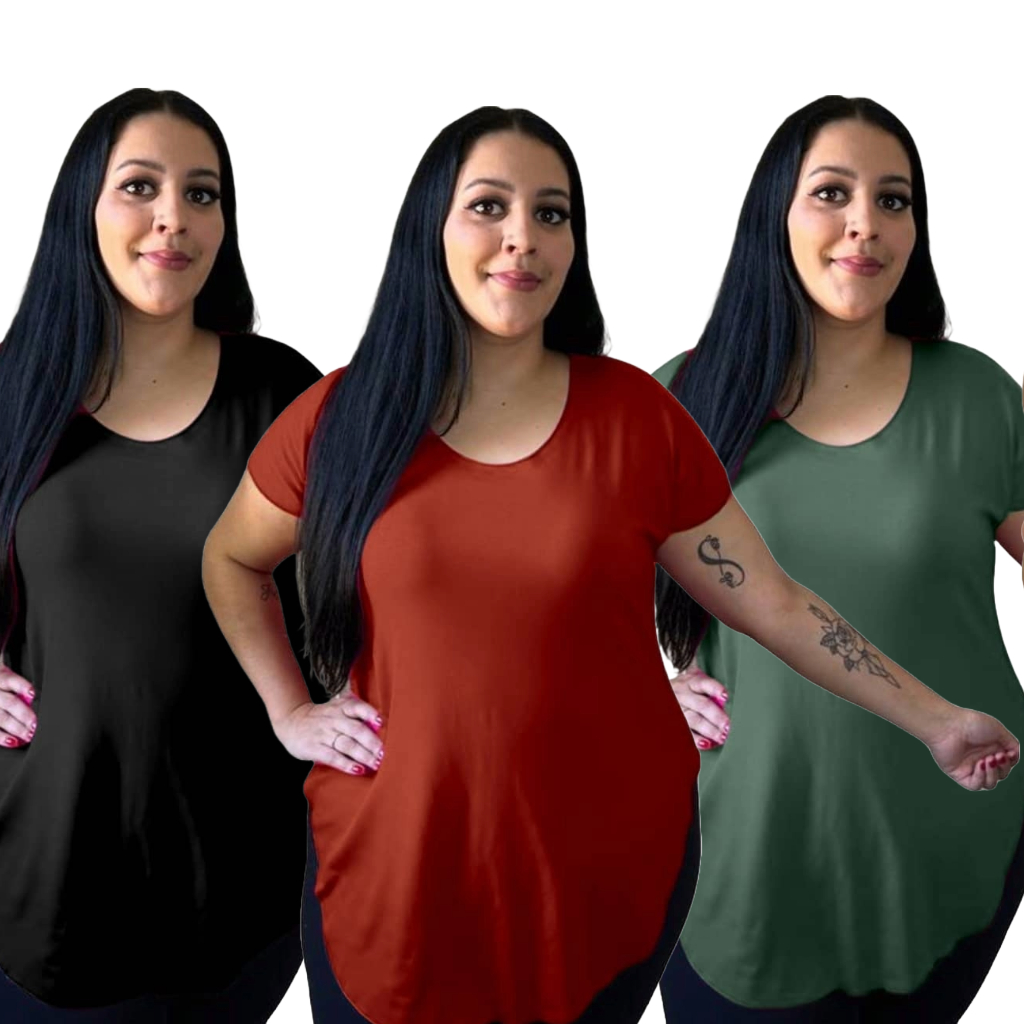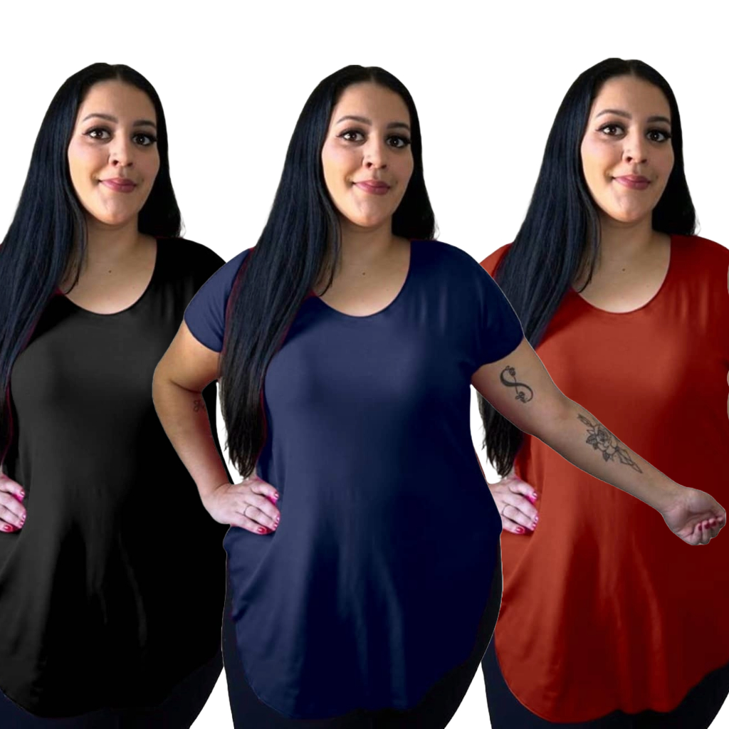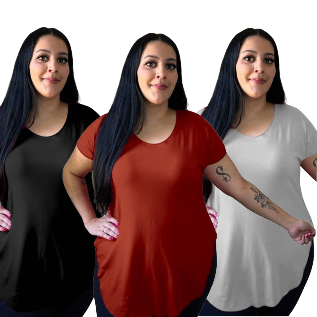 Kit 3 Blusas Tapa Bumbum Plus Size de Viscolycra Fitness