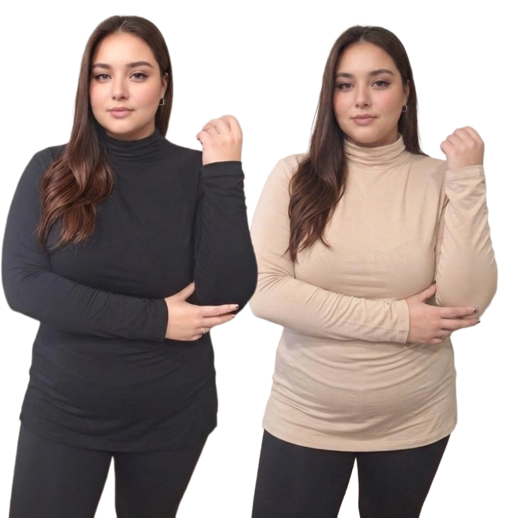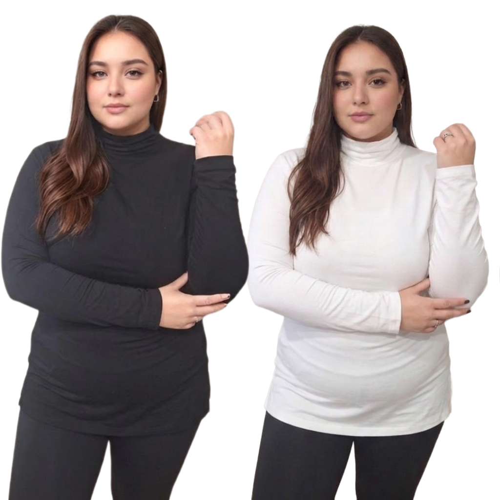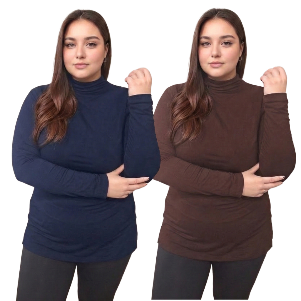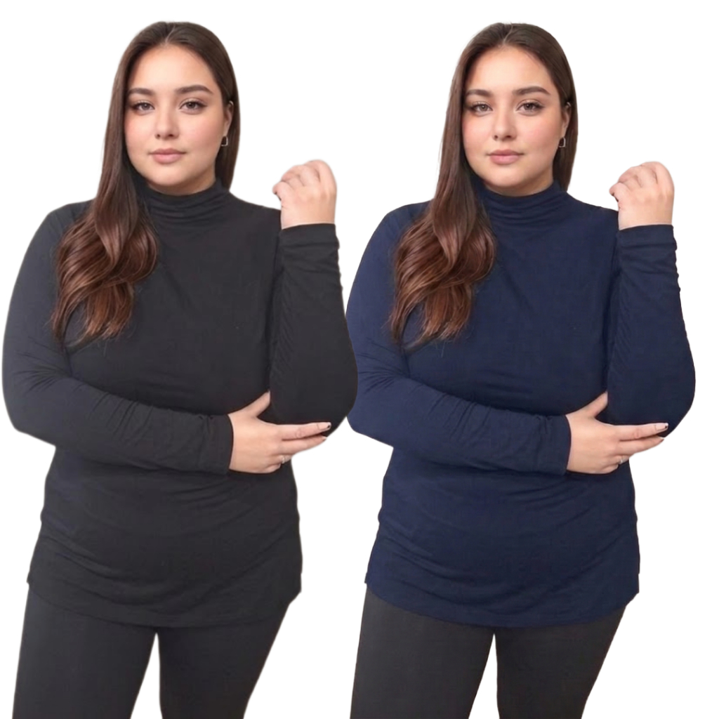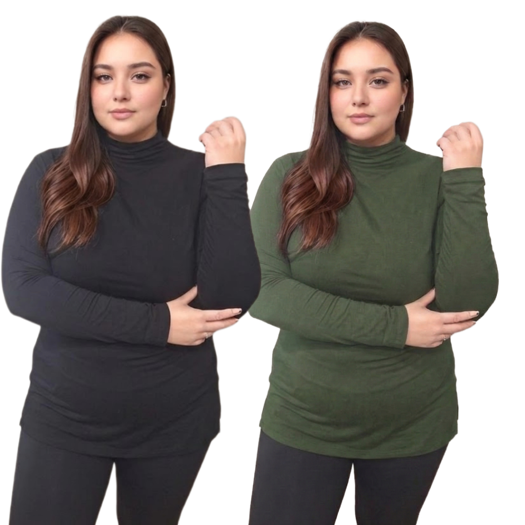Kit 2 Blusas Plus Size Vest Legging Manga Longa Gola Alta Cacharel Tapa Bumbum