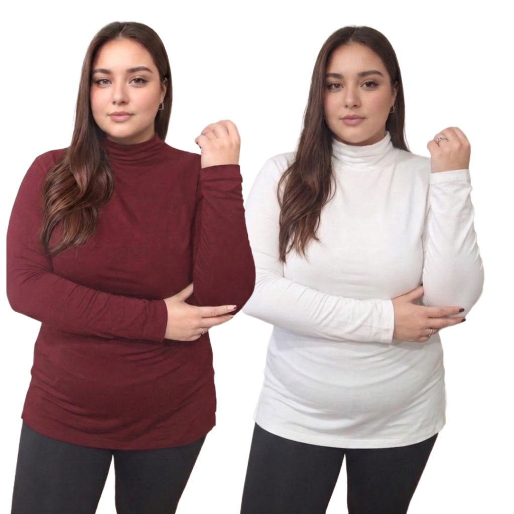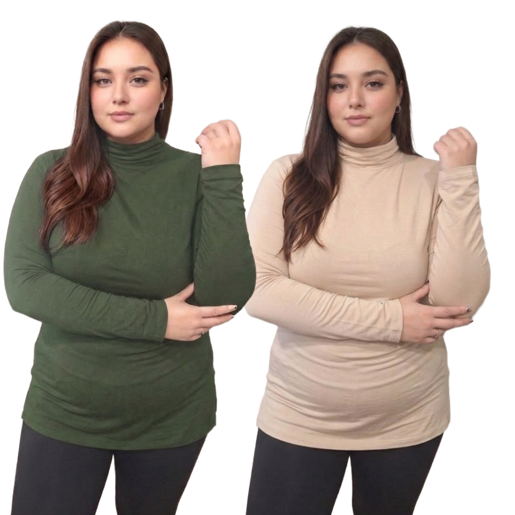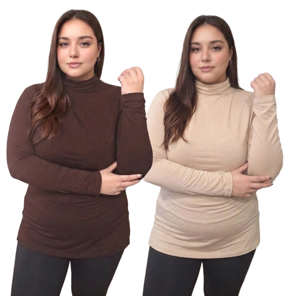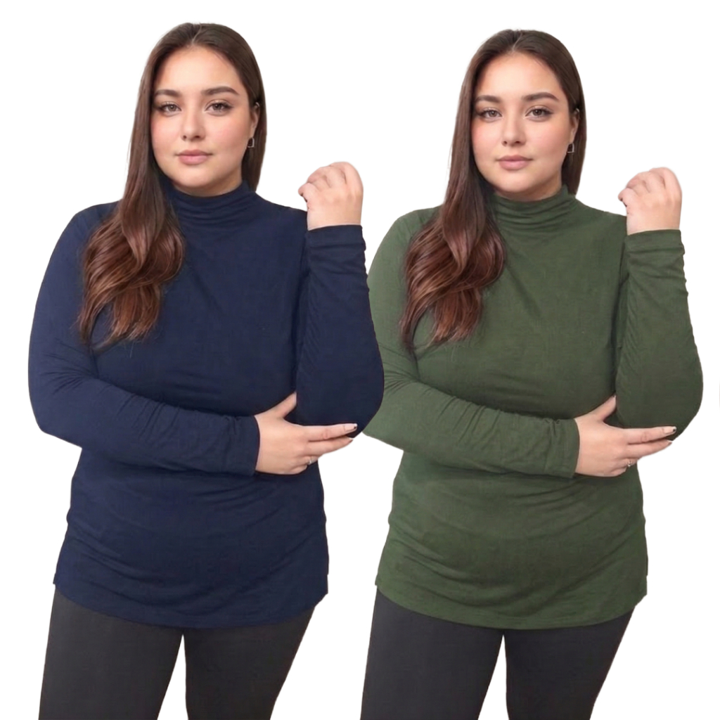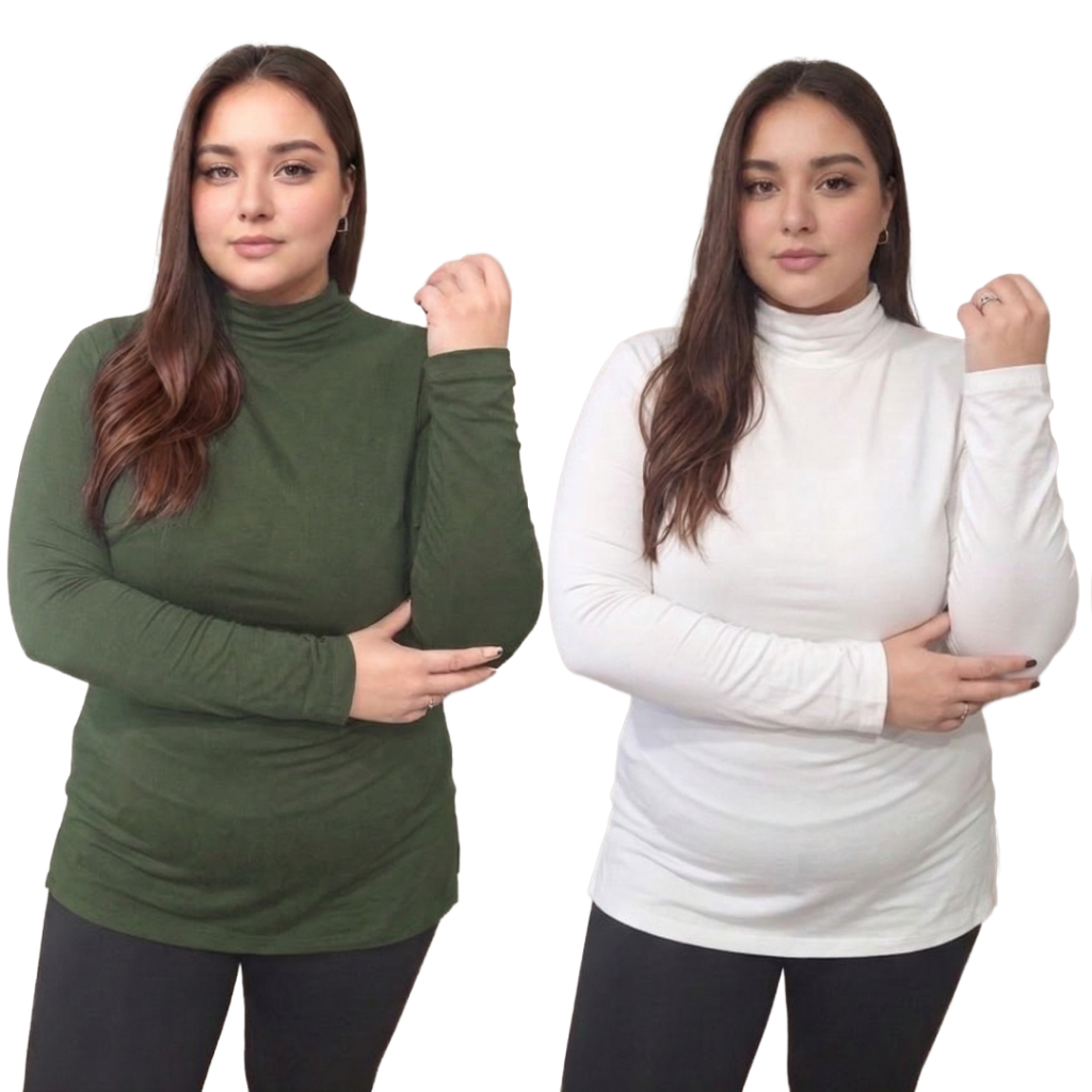 Kit 2 Blusas Plus Size Vest Legging Manga Longa Gola Alta Cacharel Tapa Bumbum
