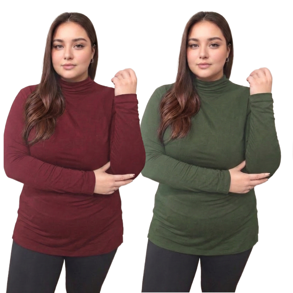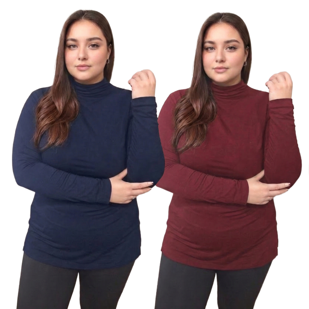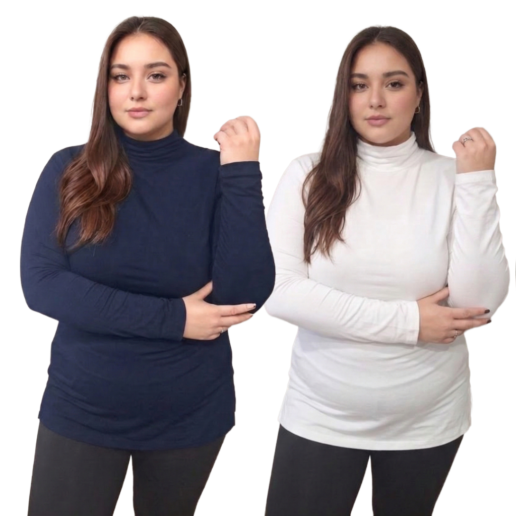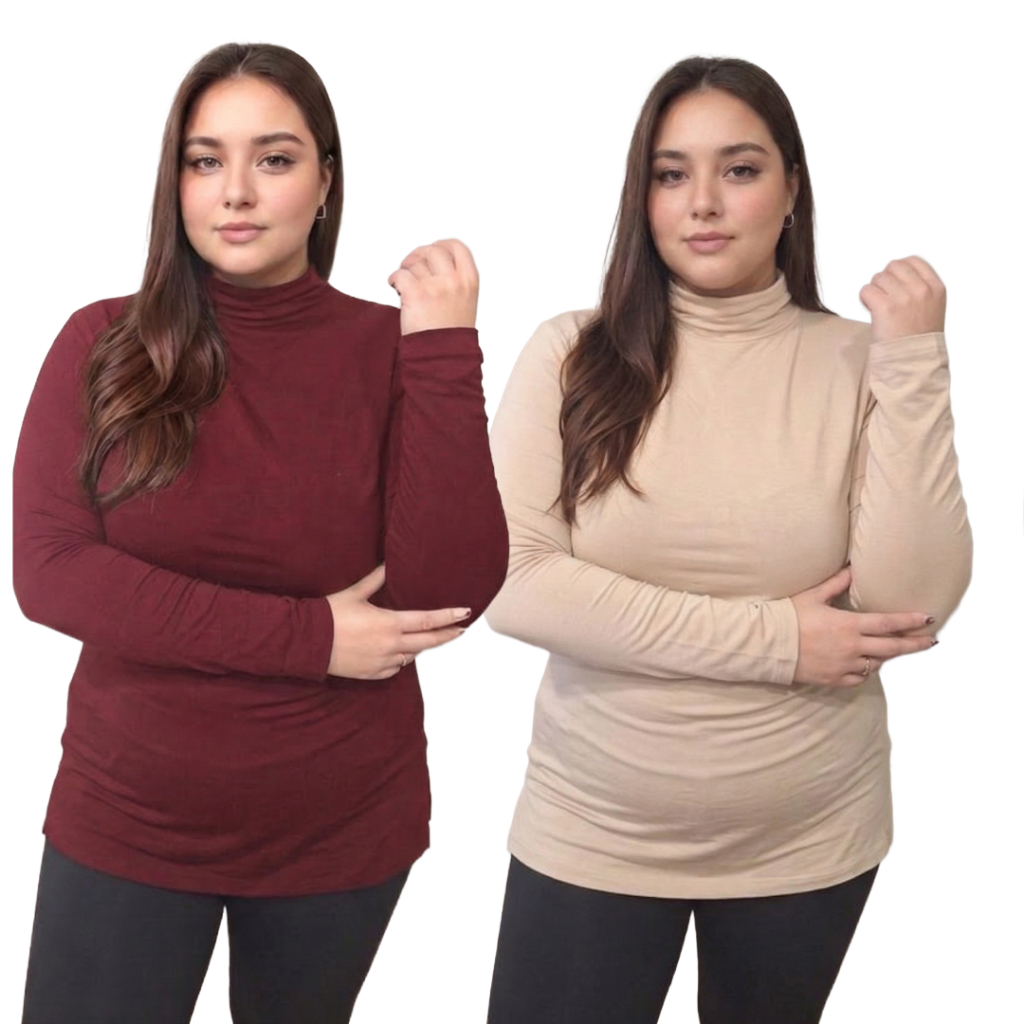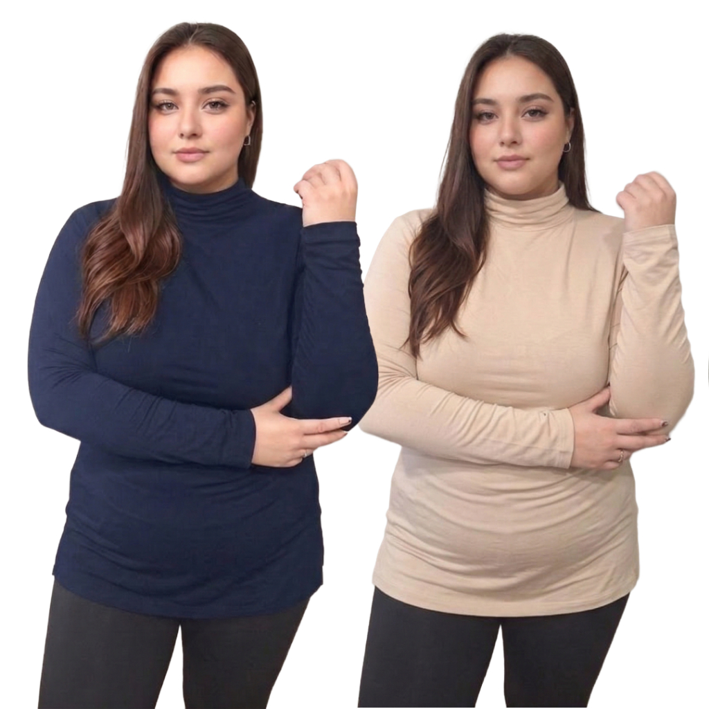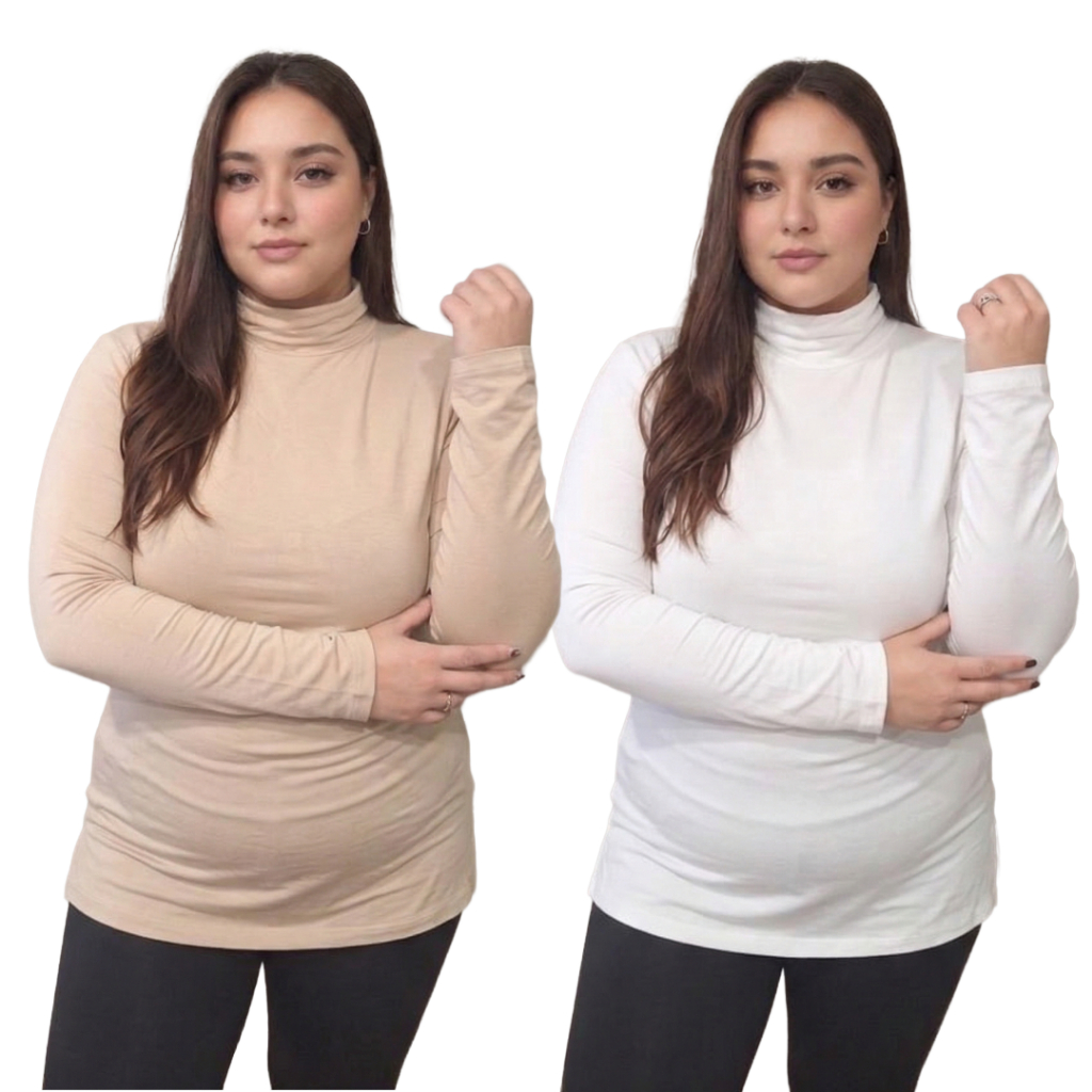 Kit 2 Blusas Plus Size Vest Legging Manga Longa Gola Alta Cacharel Tapa Bumbum