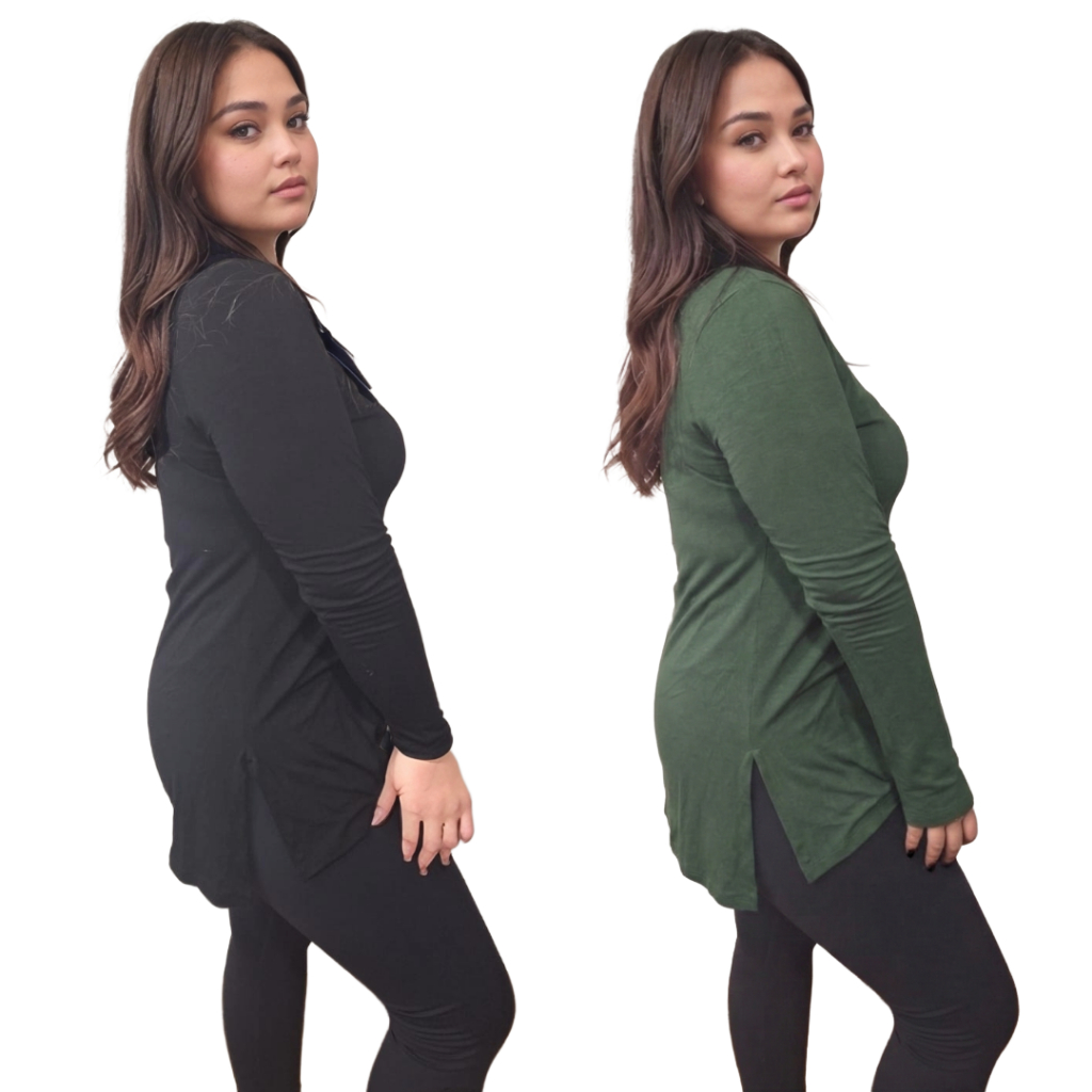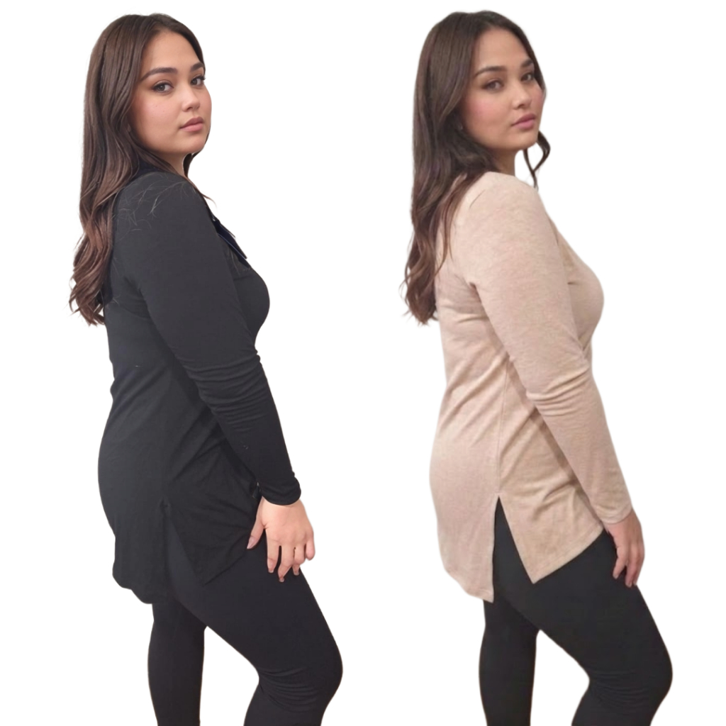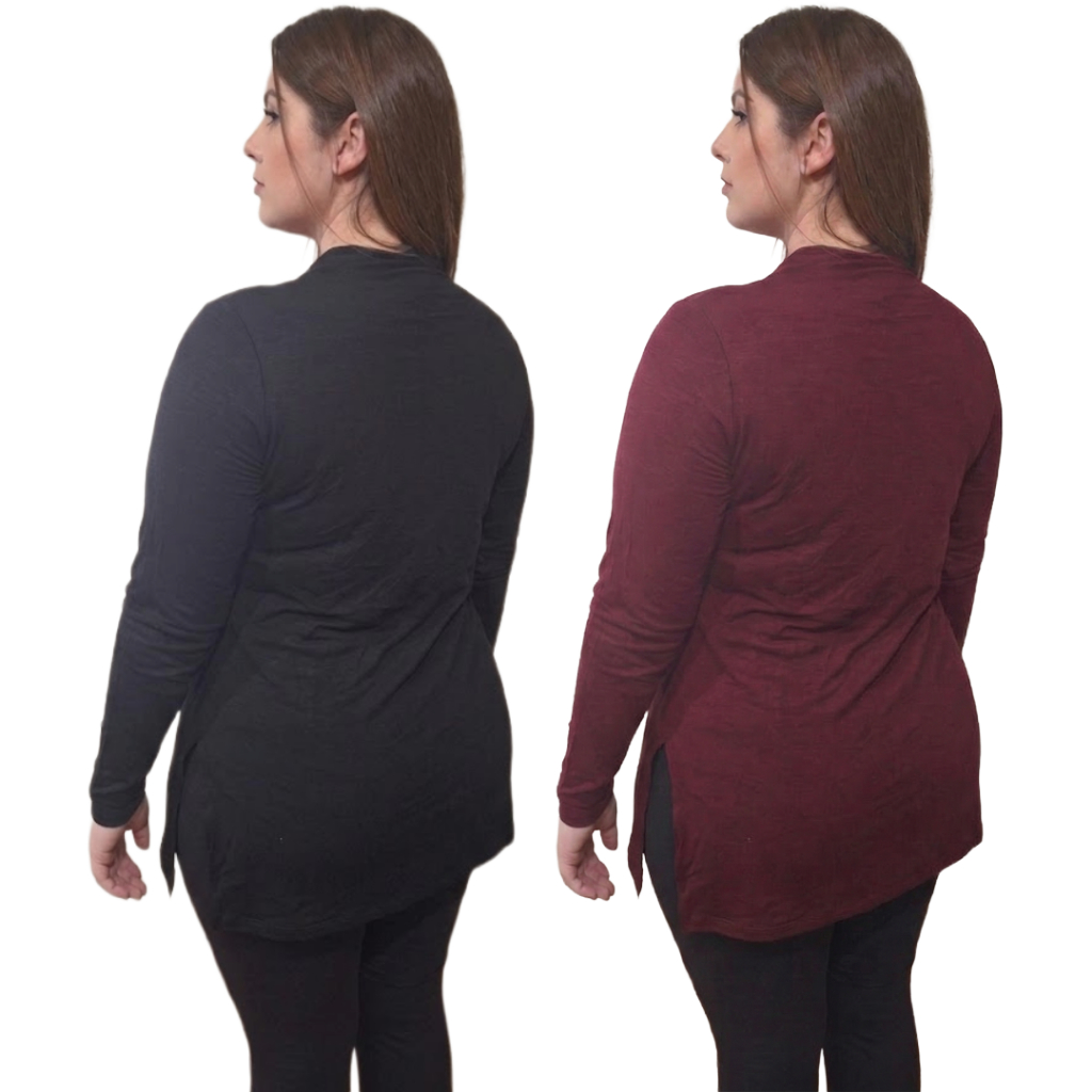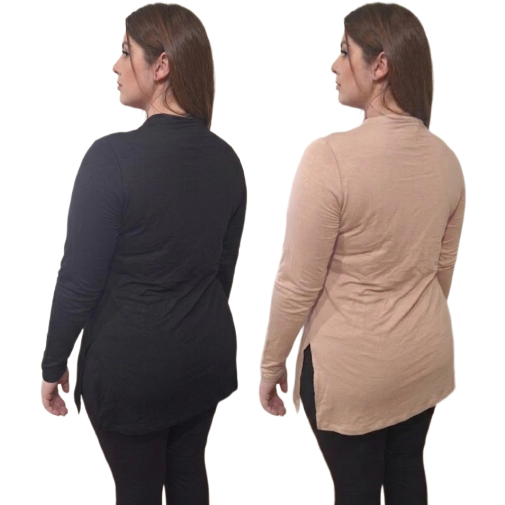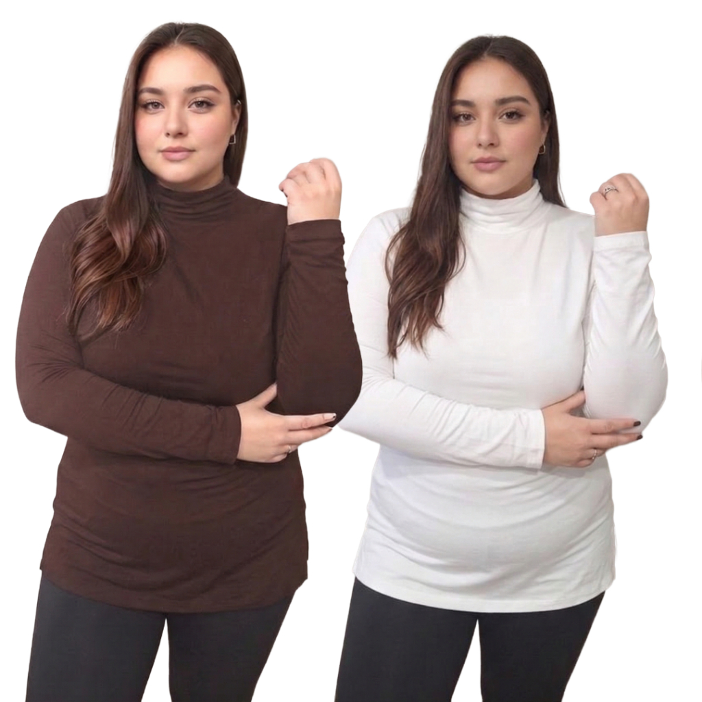 Kit 2 Blusas Plus Size Vest Legging Manga Longa Gola Alta Cacharel Tapa Bumbum