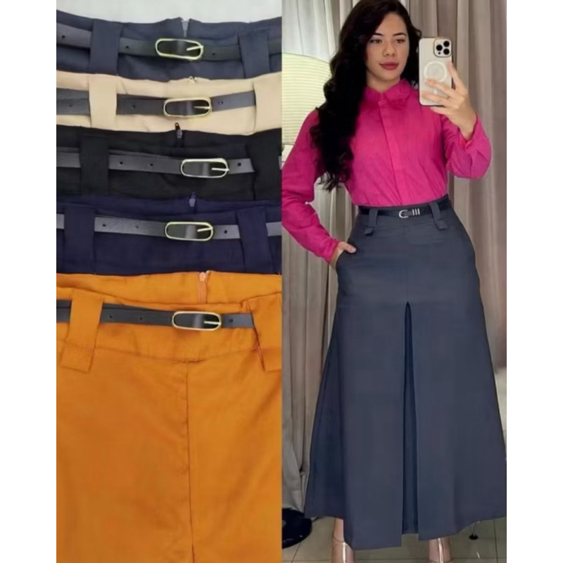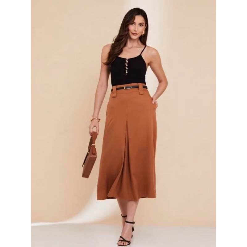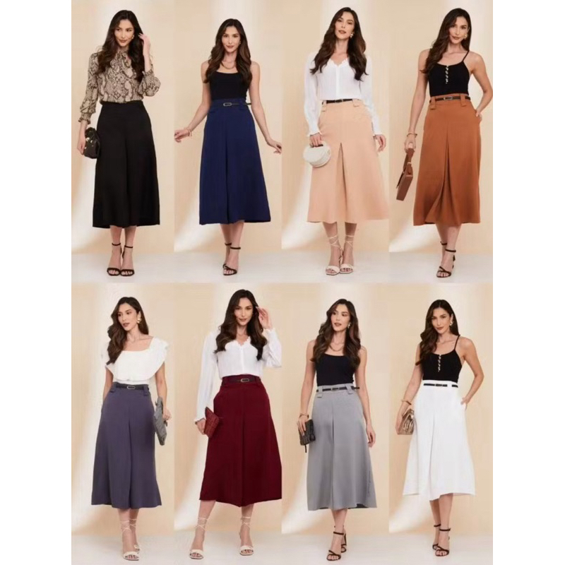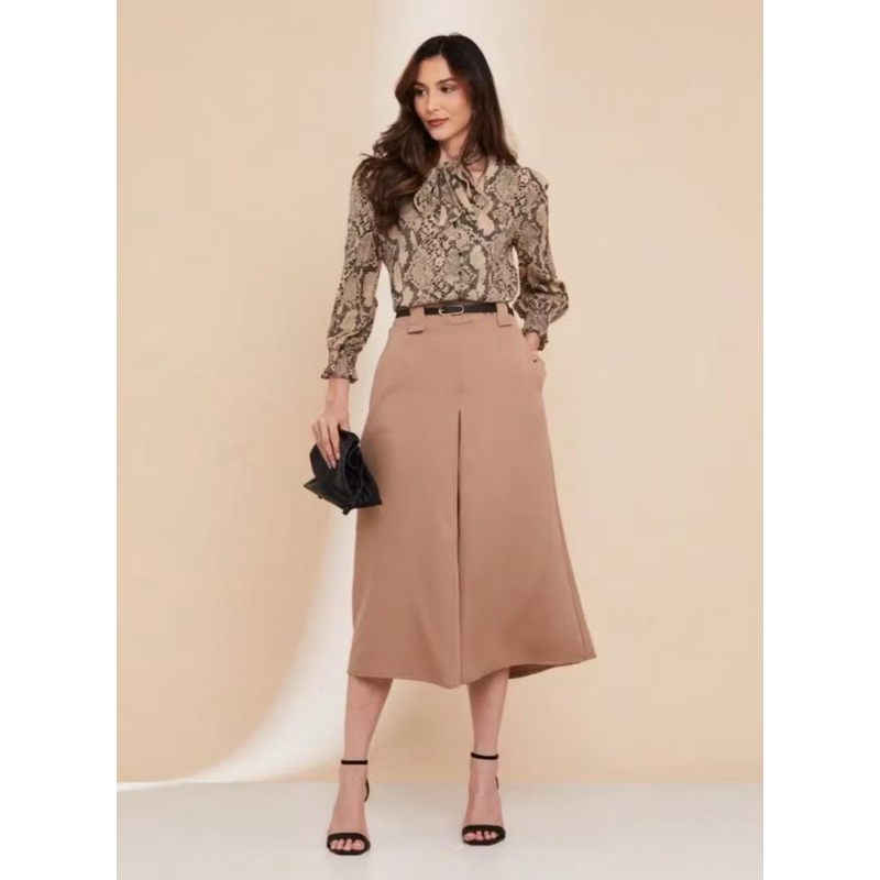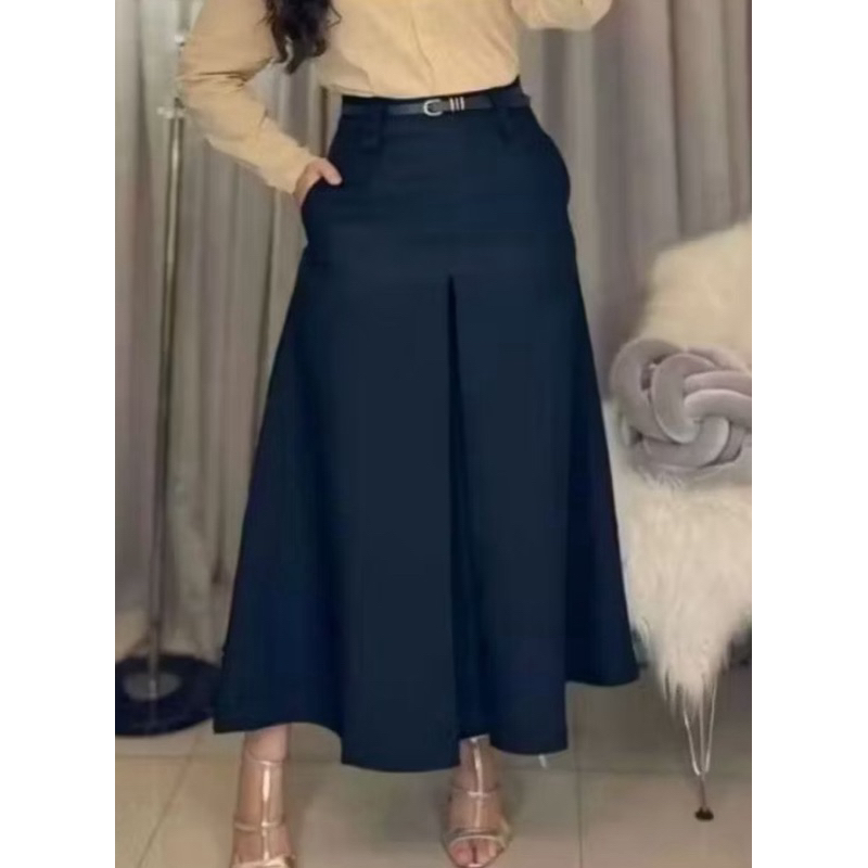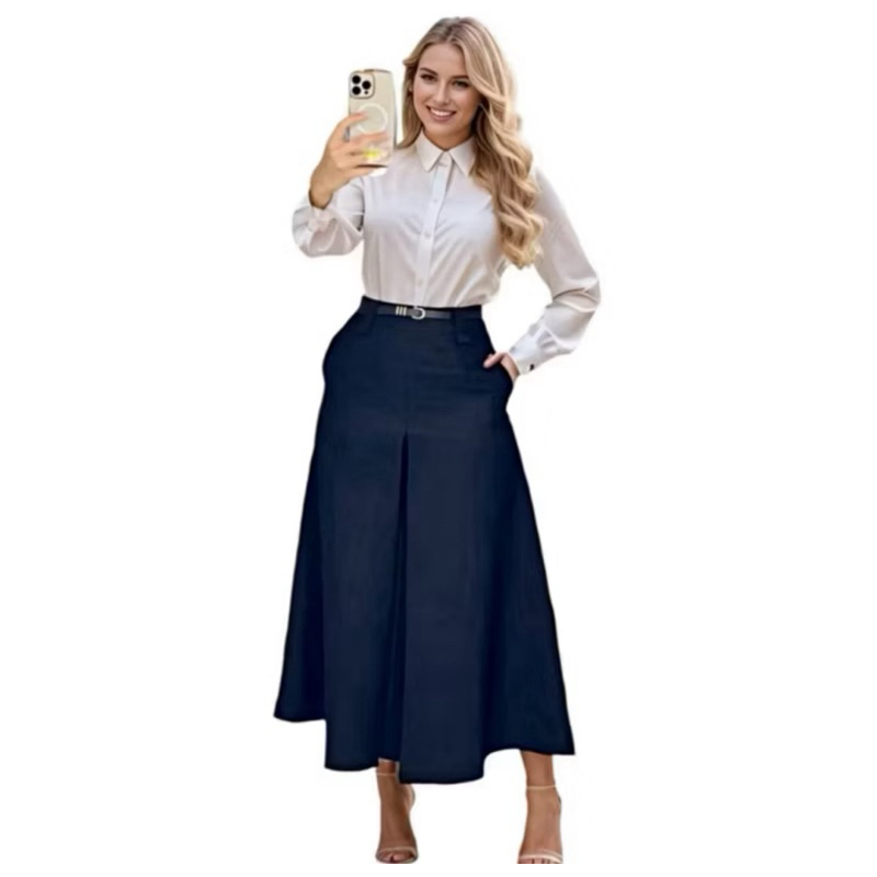Saia Longa Alfaiataria Fit e Flare Feminina Moda Evangélica Cintura Alta Fenda Fechada