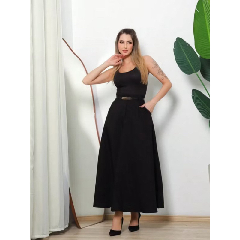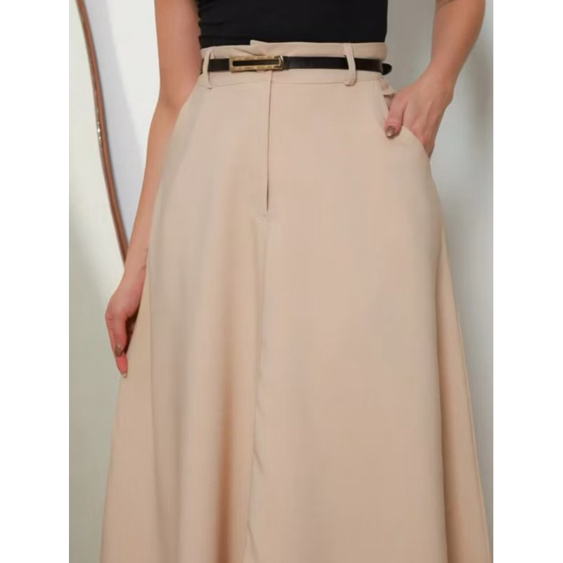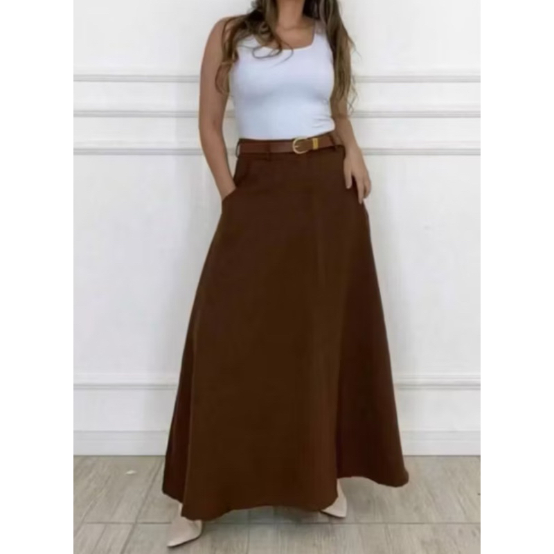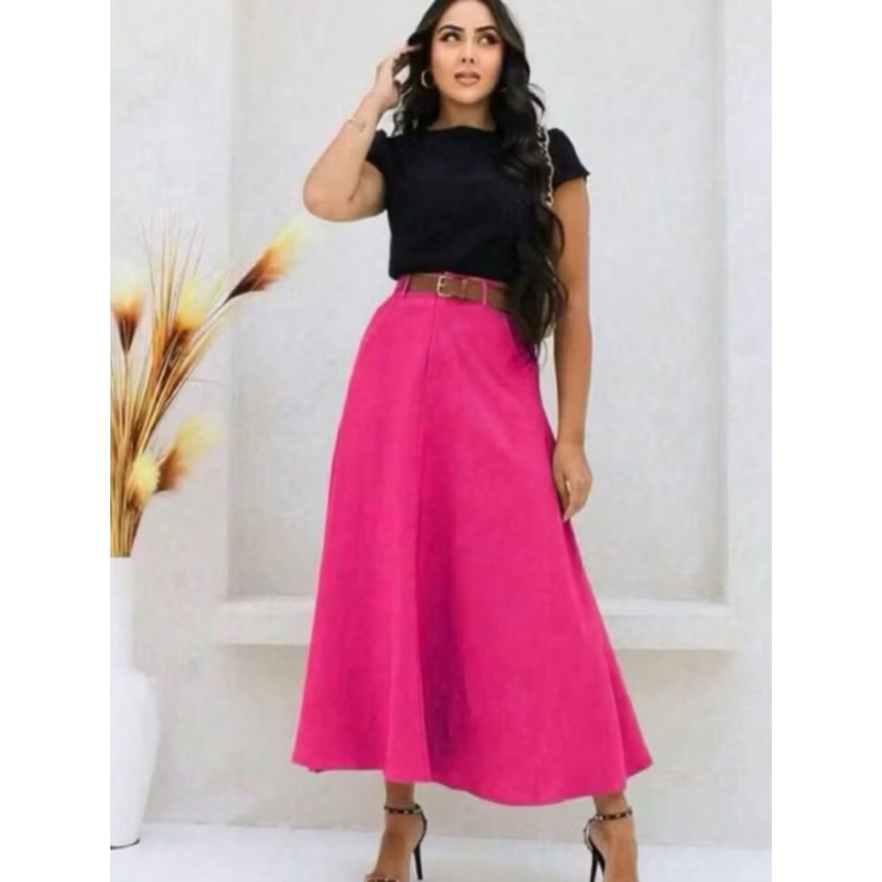 SAIA RODADA LONGA FEMININA ALFAIATARIA MODA EVANGÉLICA CASUAL BÁSICA INVERNO CINTURA ALTA ELEGANTE TENDÊNCIA