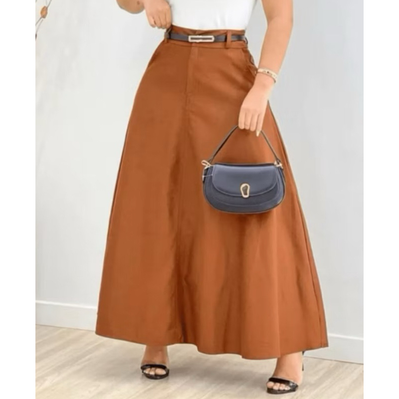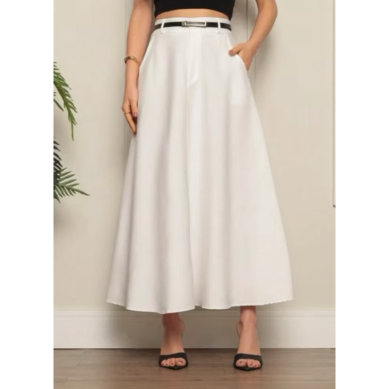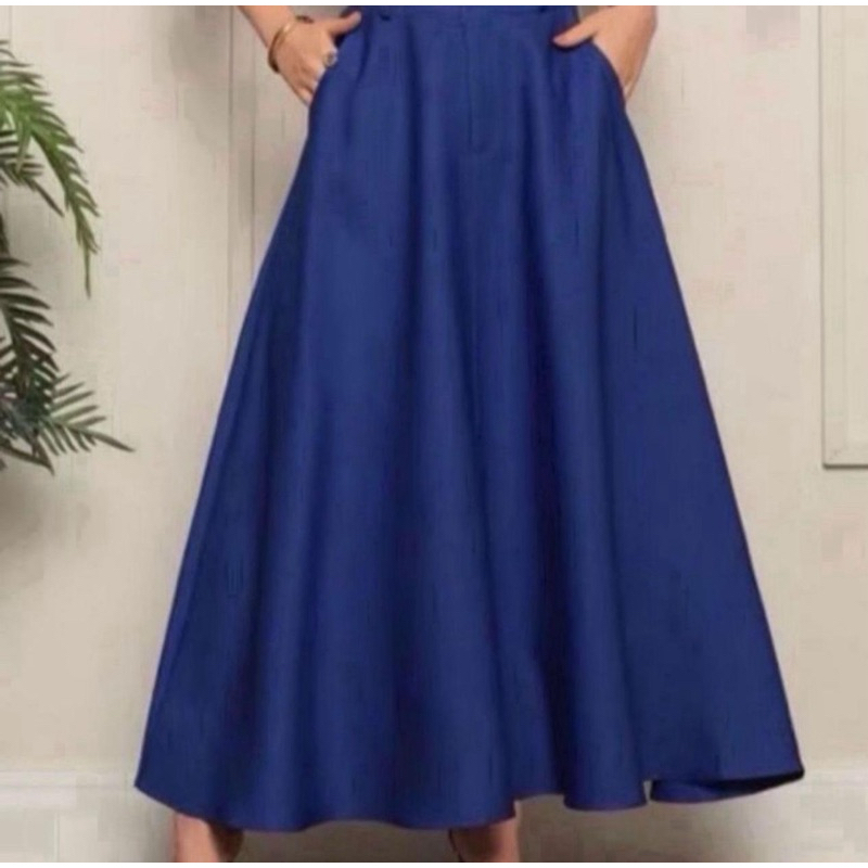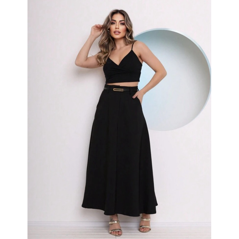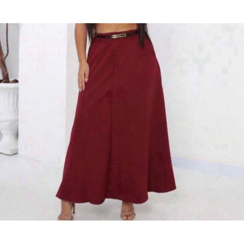 Saia Longa Rodada Feminina Alfaiataria Moda Evangélica Casual Básica Inverno Cintura Alta Elegante Tendência