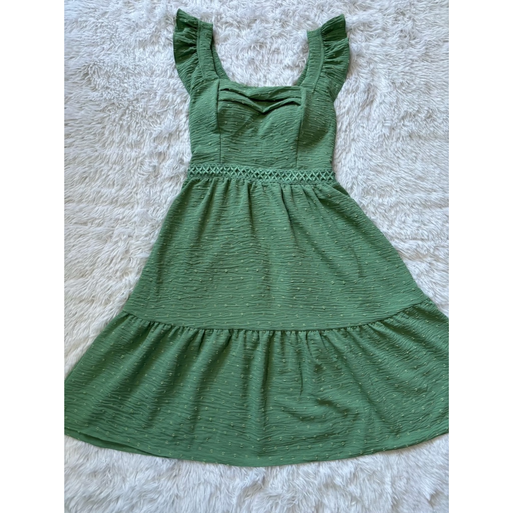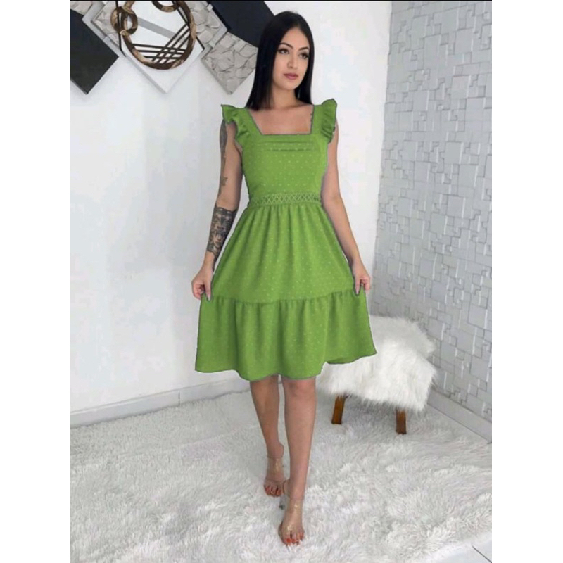 vestido curto feminino com babada na manga rend na cintura pipoca 801