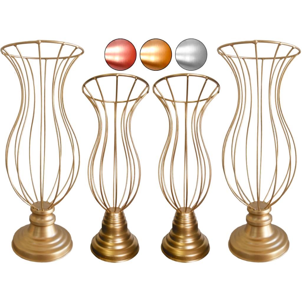 4 Vasos Jarros Armação 45cm E 35cm Para Pedrarias Ou Pérolas Decoração Luxo Casamento Kit Festa
