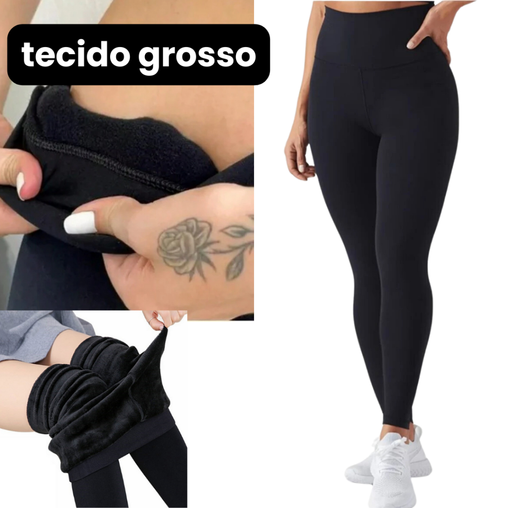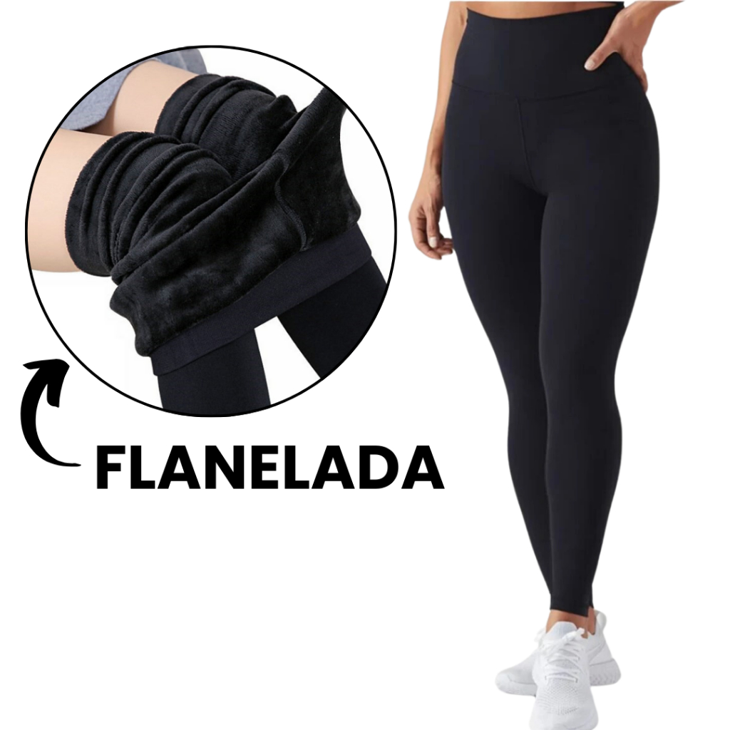 Calça Legging Flanelada Peluciada Térmica Inverno Feminina Suplex Forrada Para Frio Reforçada