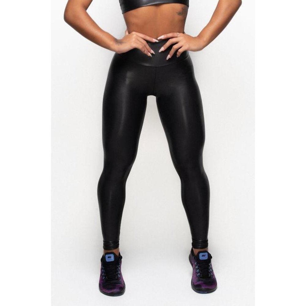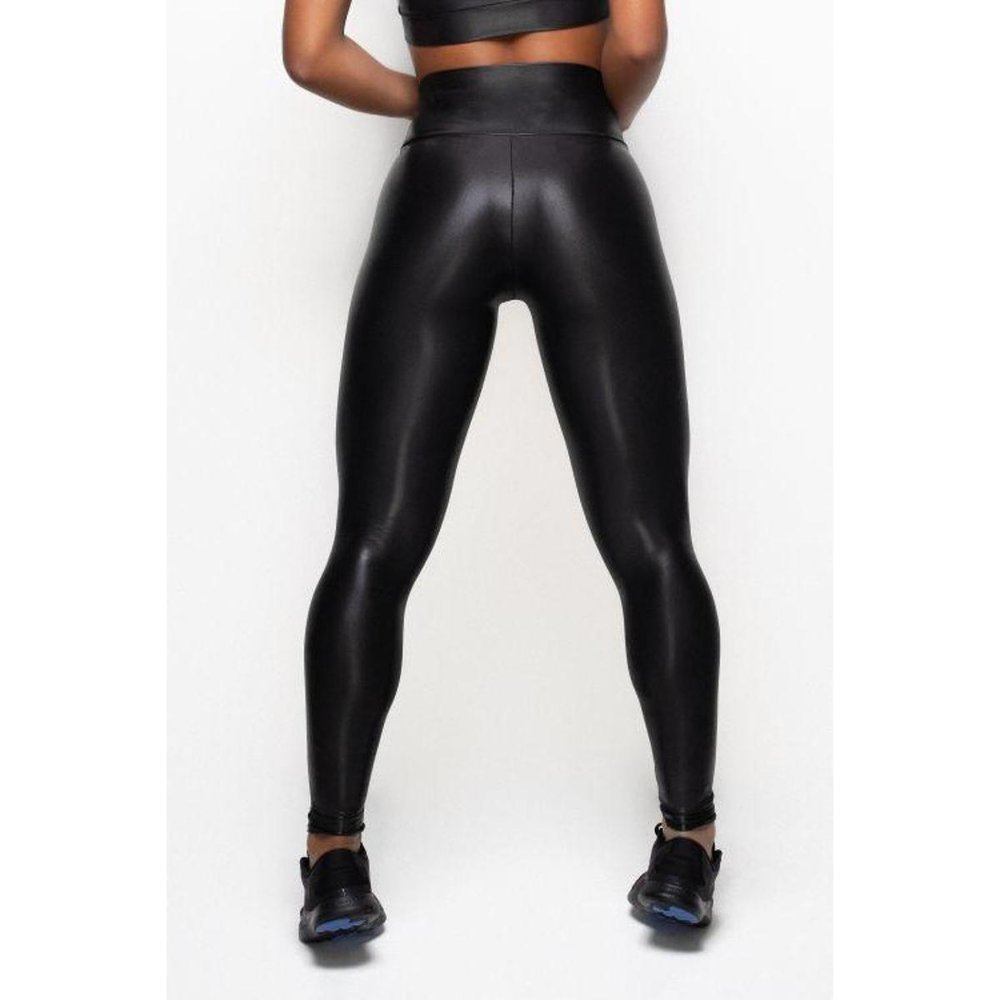 Calça Legging Cirrê Couro Fake Brilhosa Skinny Cintura Alta Feminina Suplex