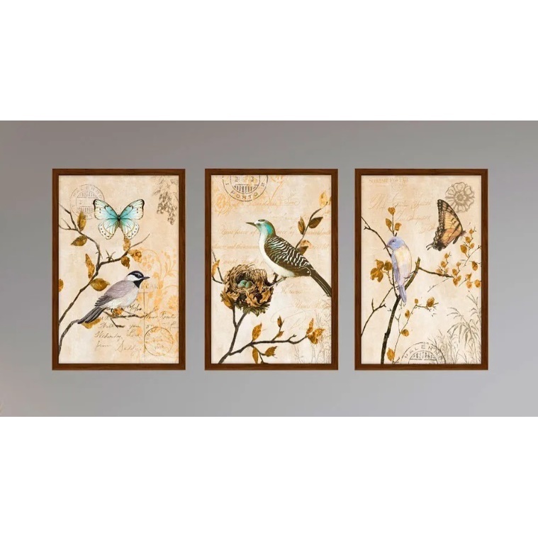 Quadros Decoração Sala Varanda Flores Pássaros Borboletas