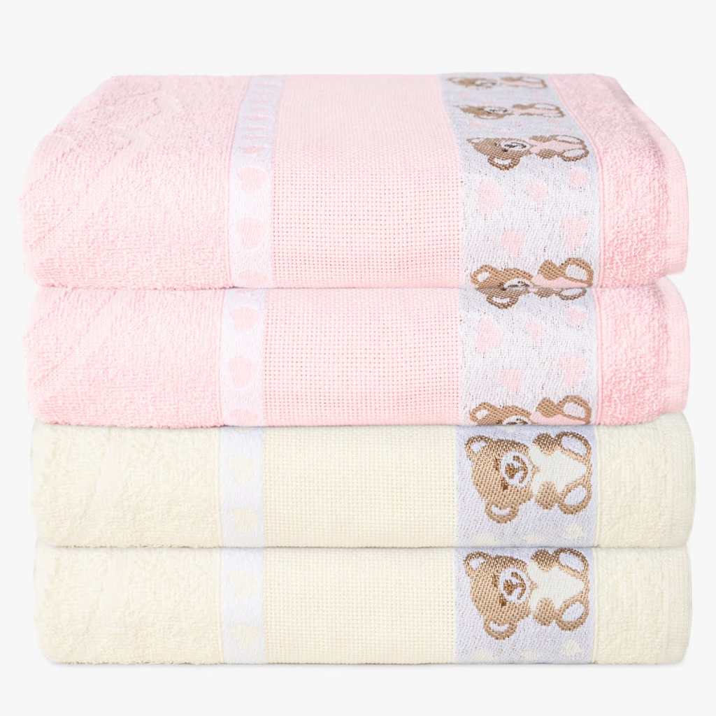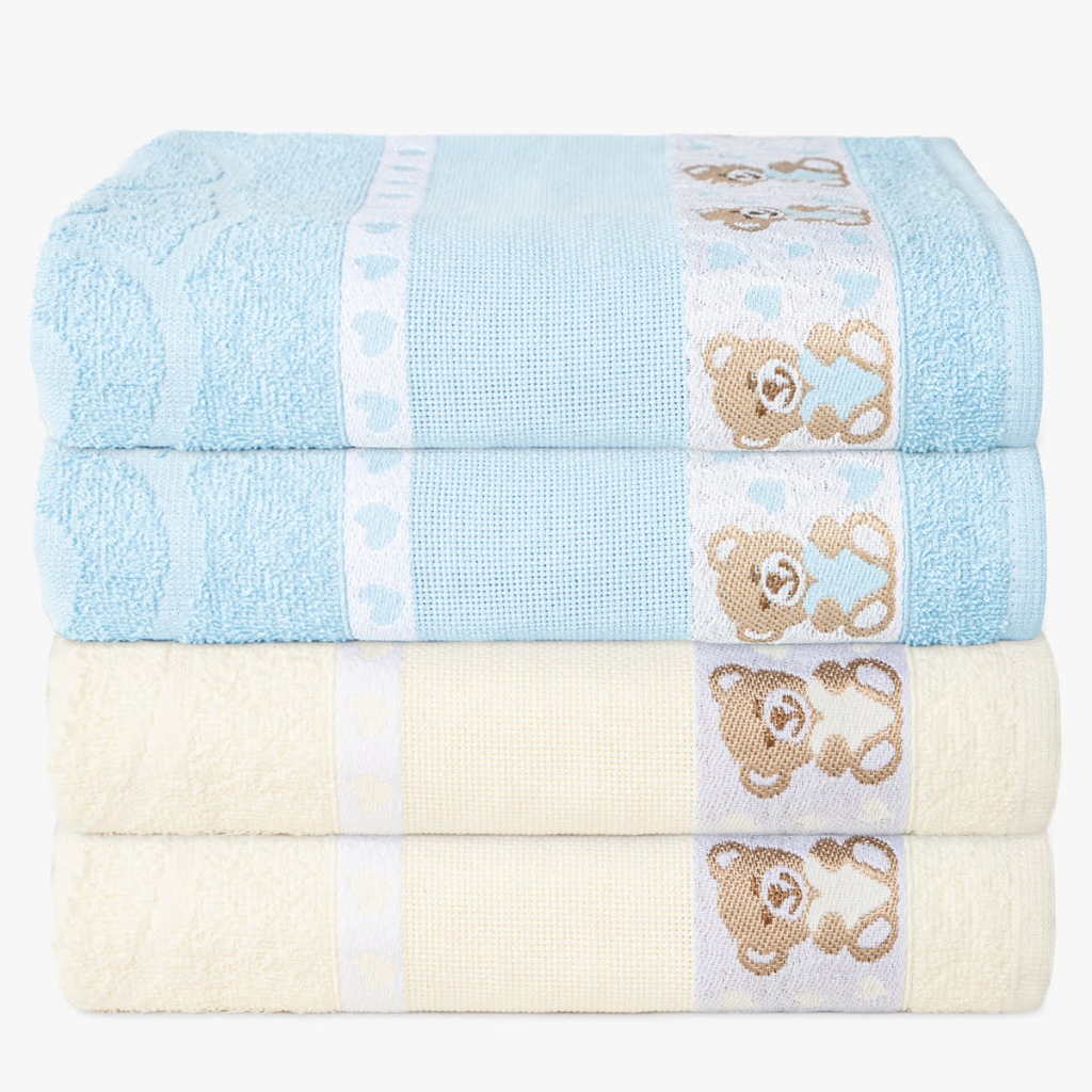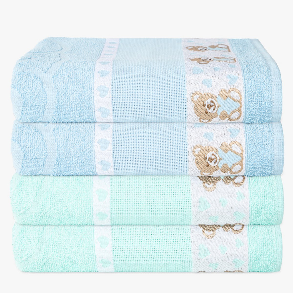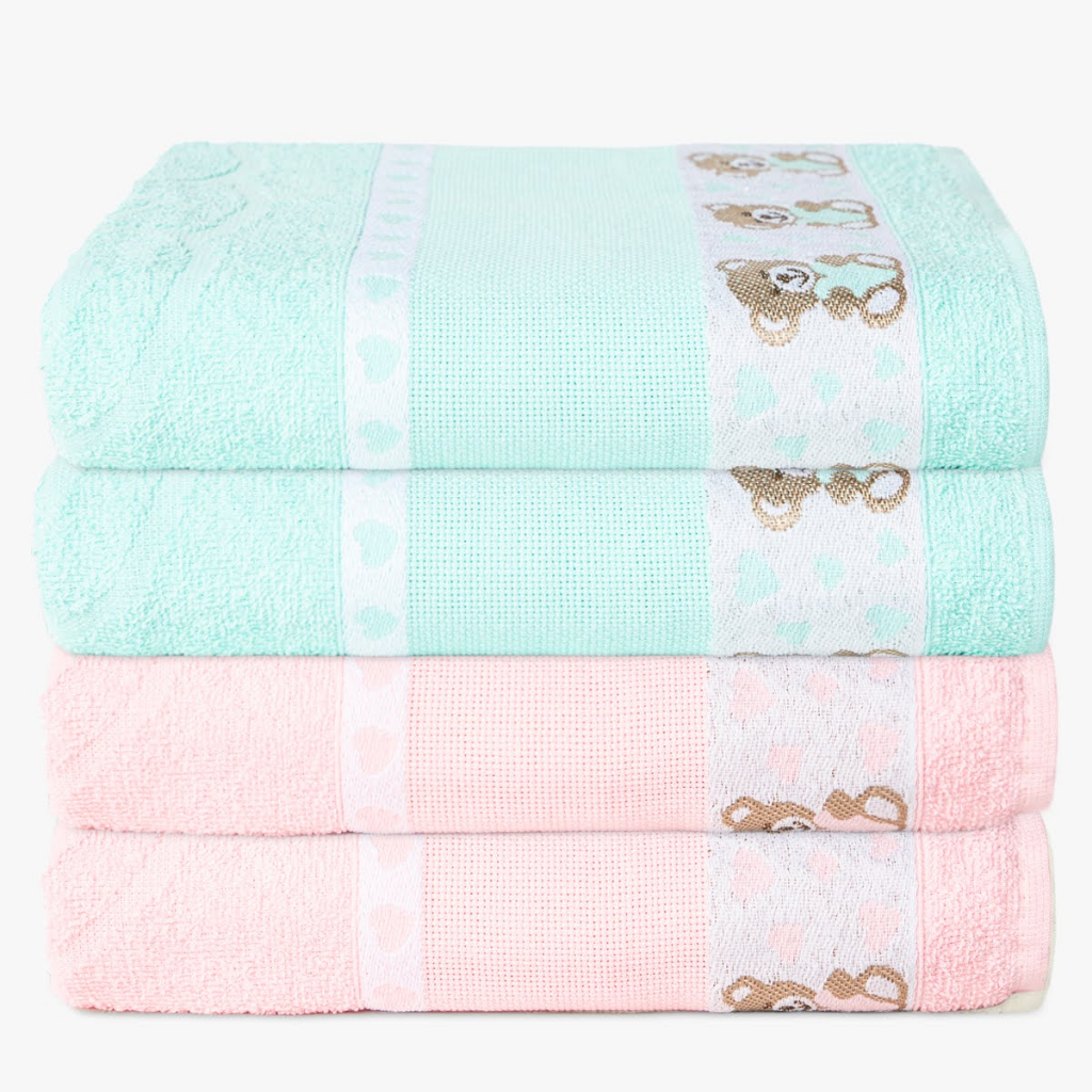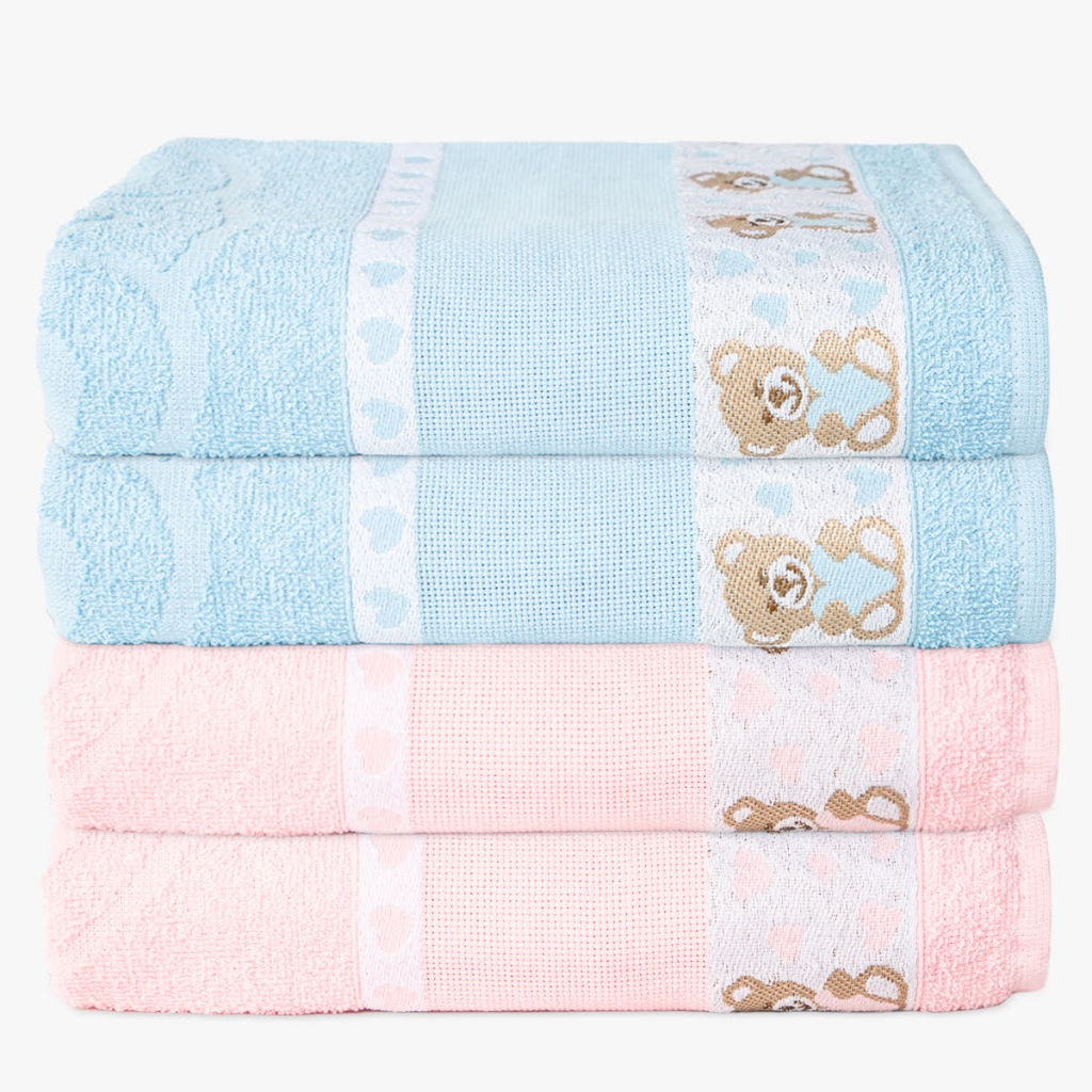Kit 4 Toalha de Banho Infantil Menino e Menina Kids Para Bordar 100% Algodão - 70x1.10m