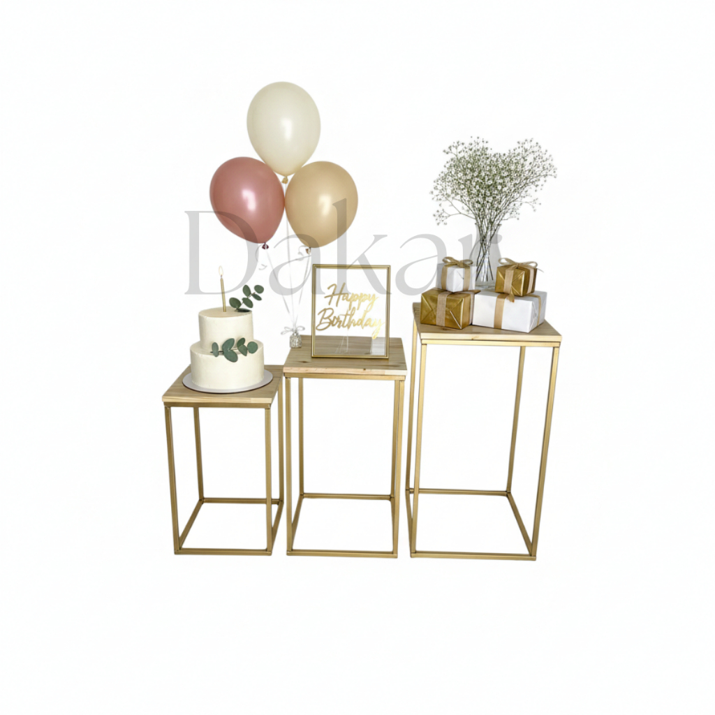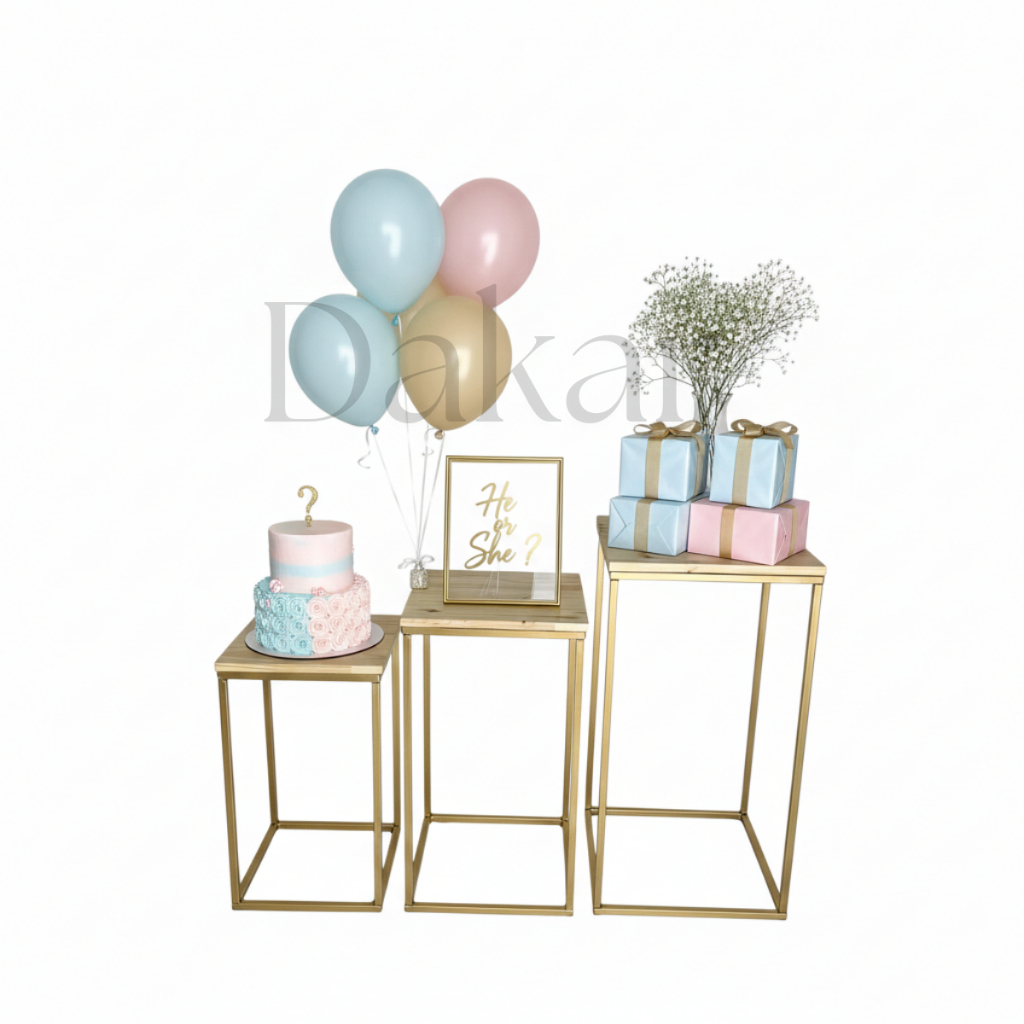 Trio de Mesas Cubo Pegue e Monte Decoração Festa Aniversario Chá Revelação