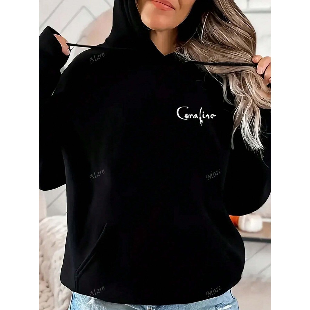 Blusa de Moletom Canguru com Capuz Unissex Coraline Caroline Preto Lançamento Envio Imediato