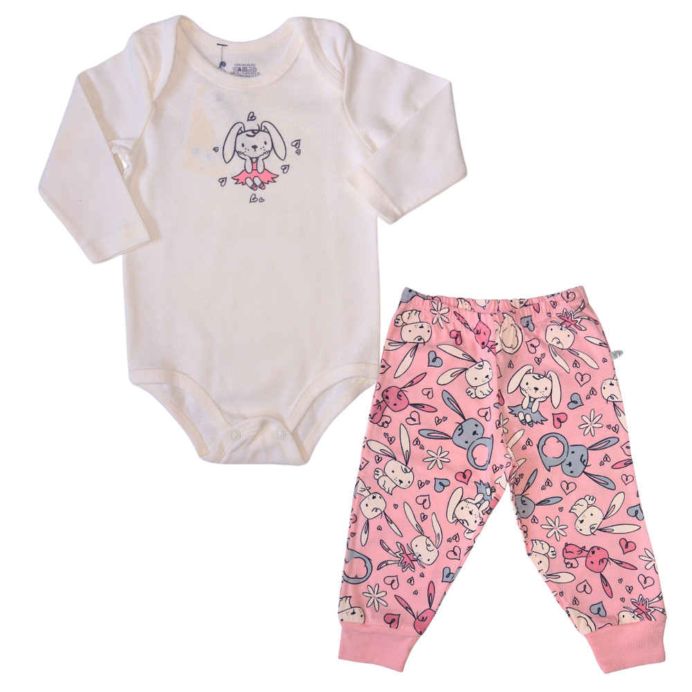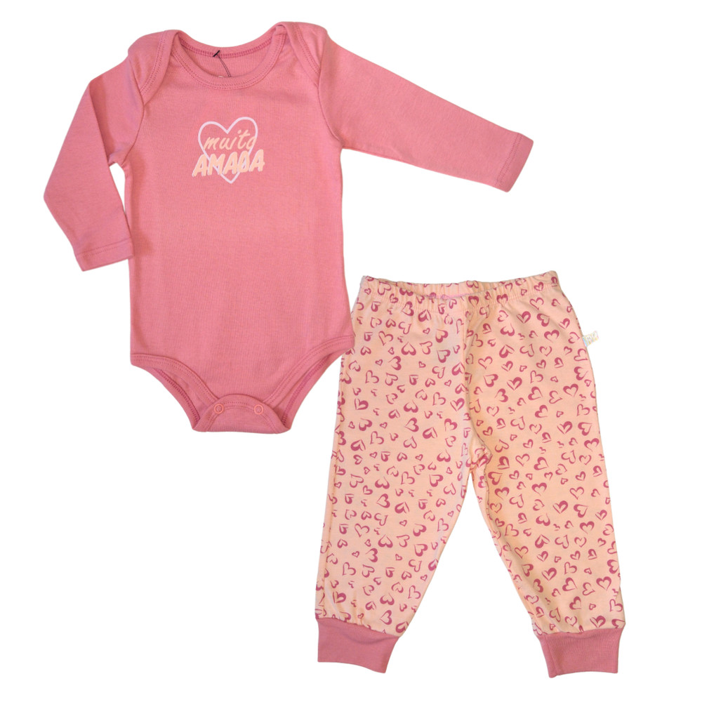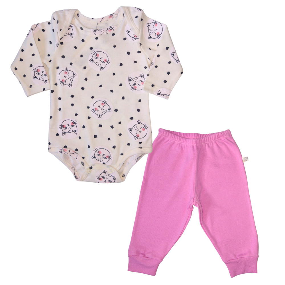 Conjunto Body Menina Manga Longa com Calça Infantil Have Fun RN ao GG Body com Estampa, Calça Estampada com Eslatico