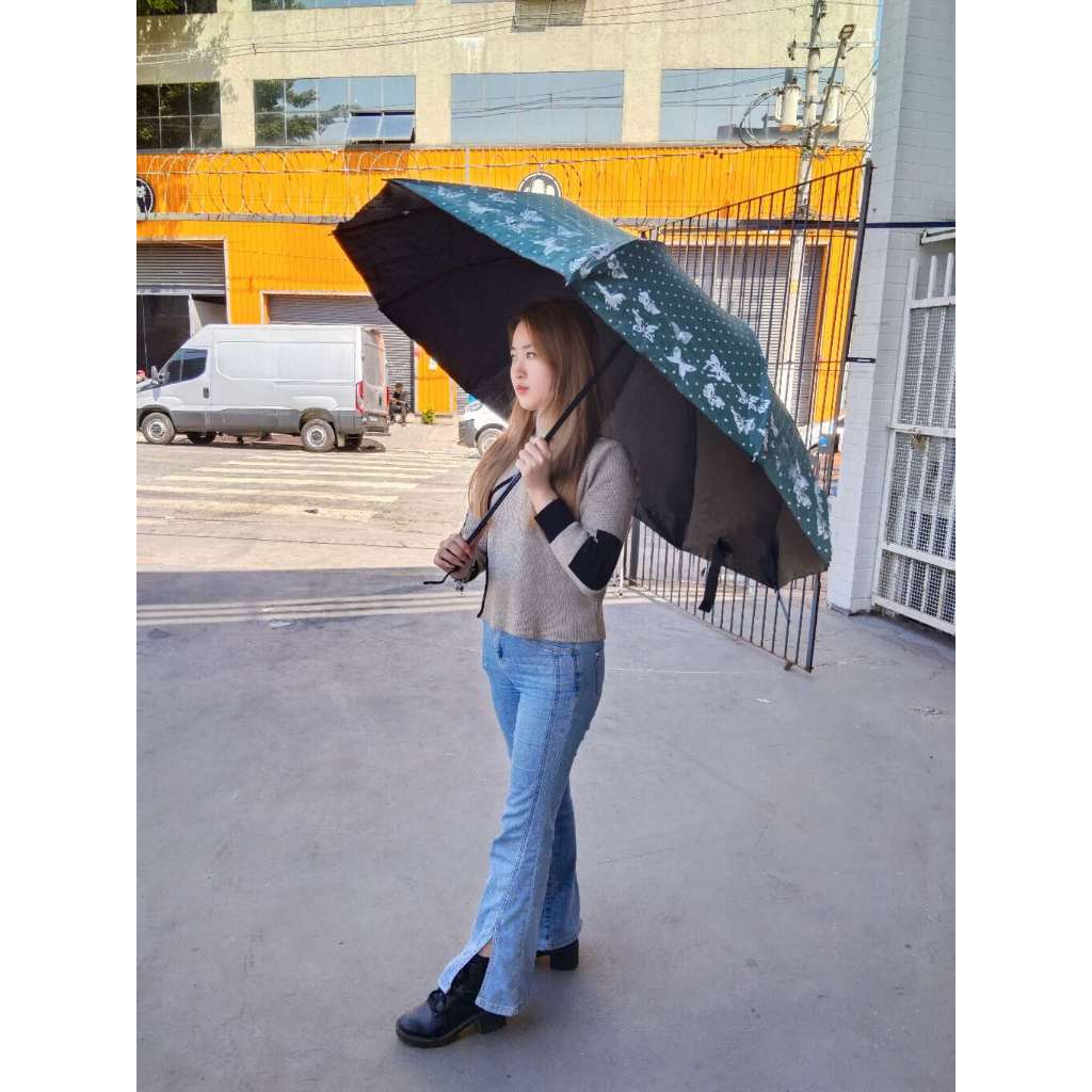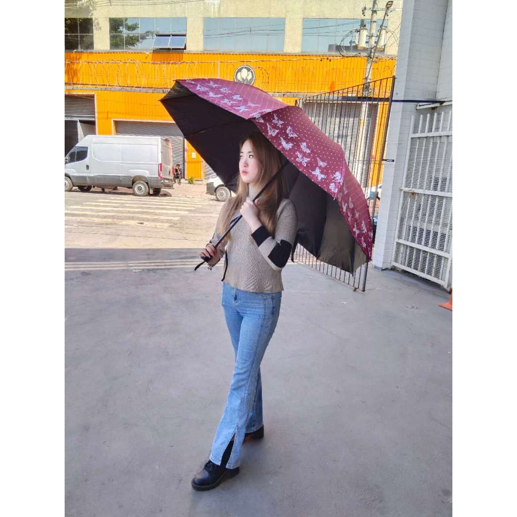 guarda-chuva feminina triplo dobrável duplo grande de dupla finalidade reforço contra vento solar uv