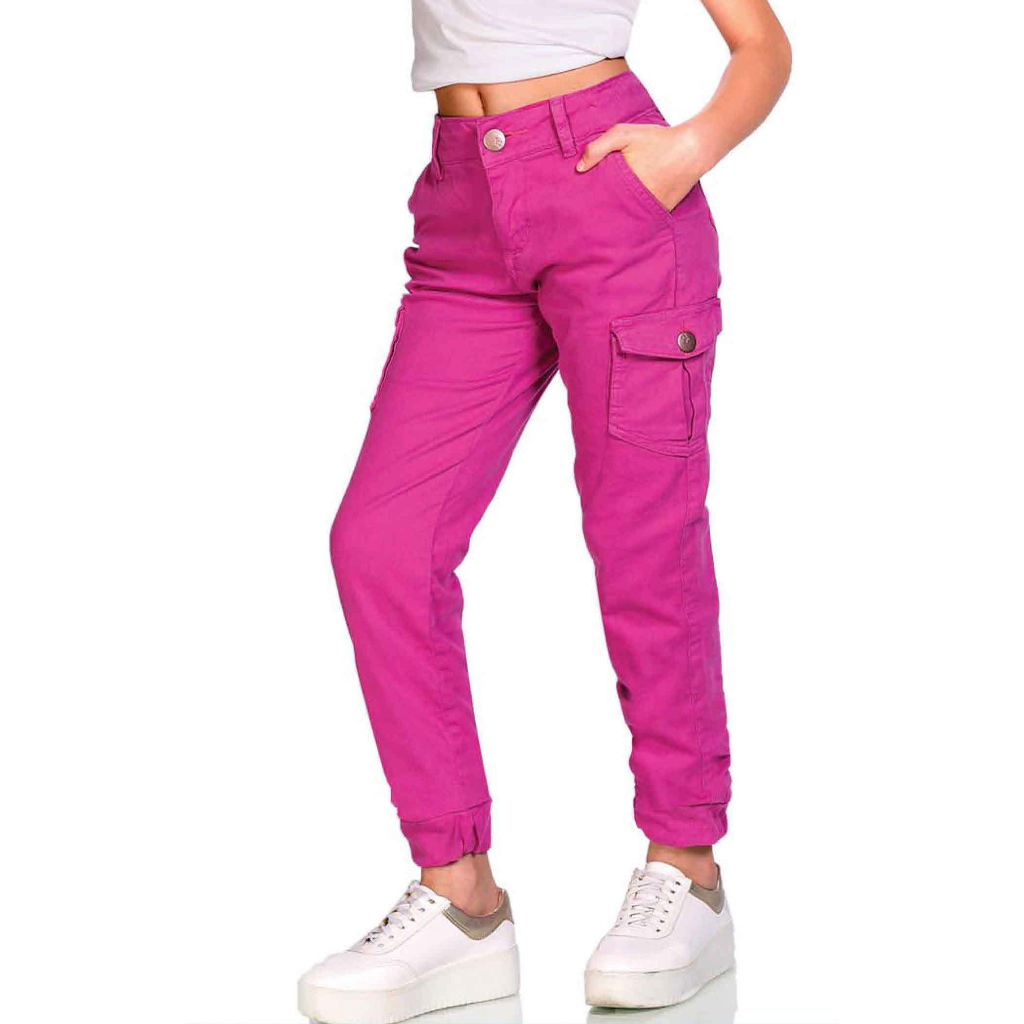 Calça Cargo Sarja Color Infantil Feminina Tam 4 Ao 16