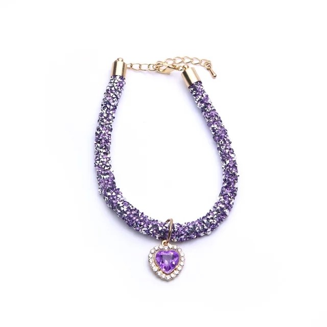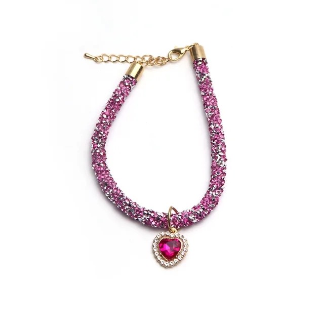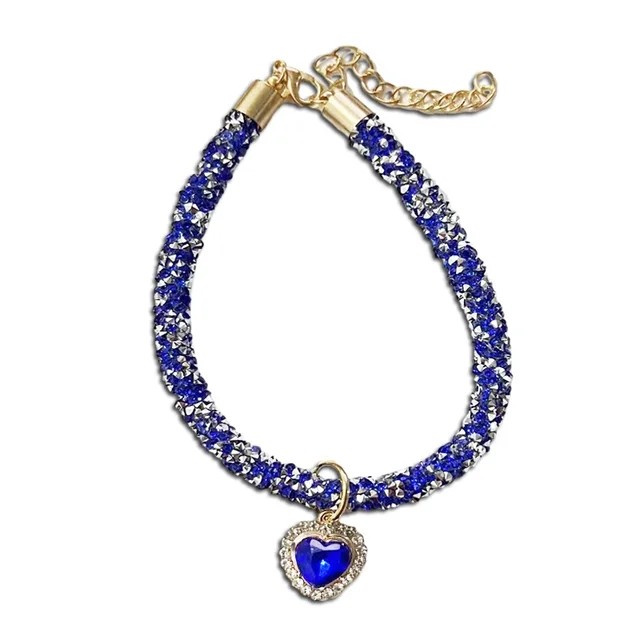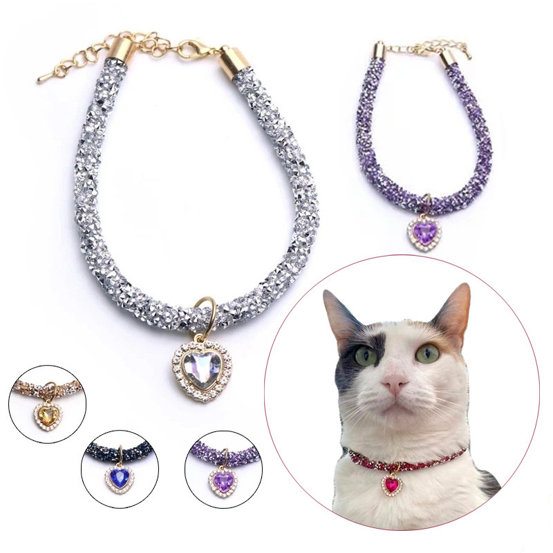 Coleira De Gato De Luxo Com Pingente De Cristal De Coração Filhote De Cachorro Chihuahua Colar Reflexivo Strass Gatinho