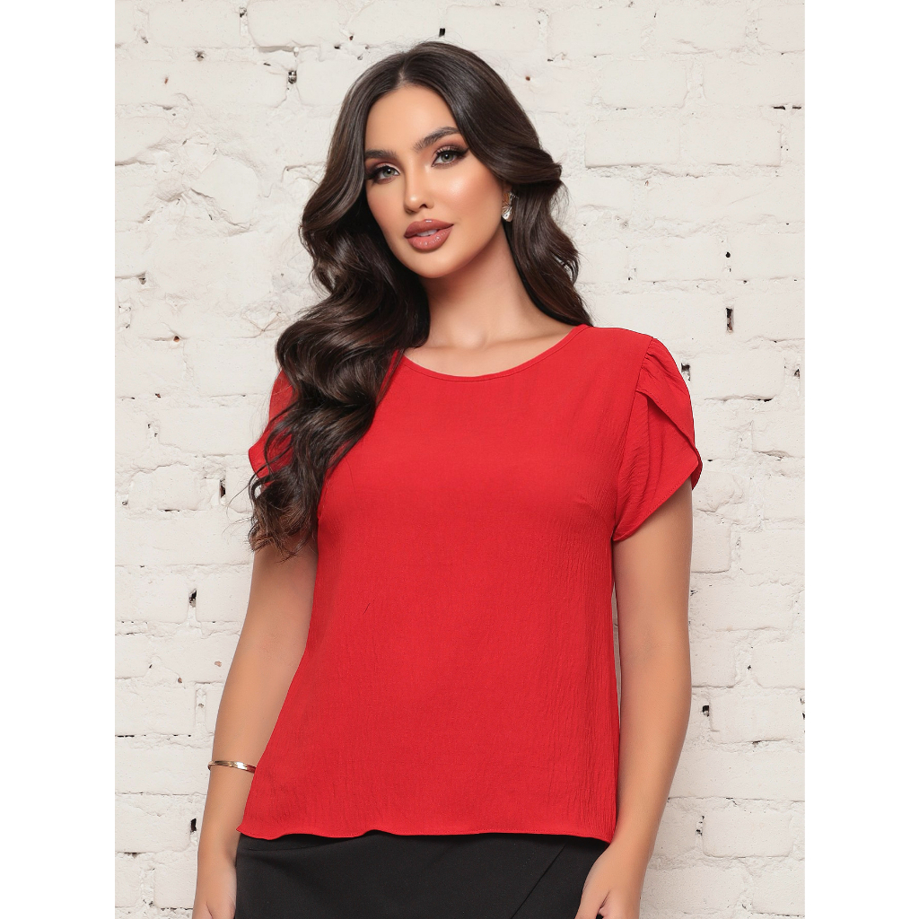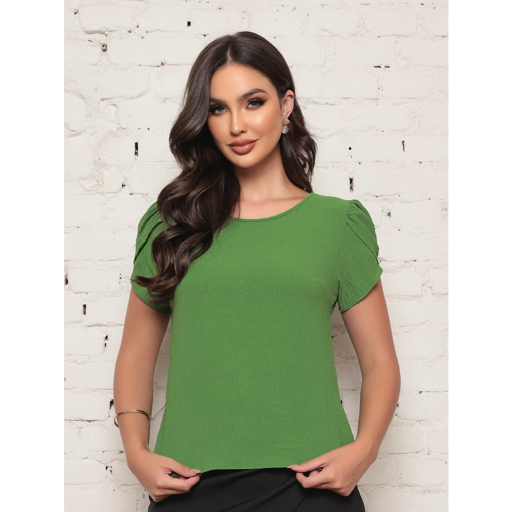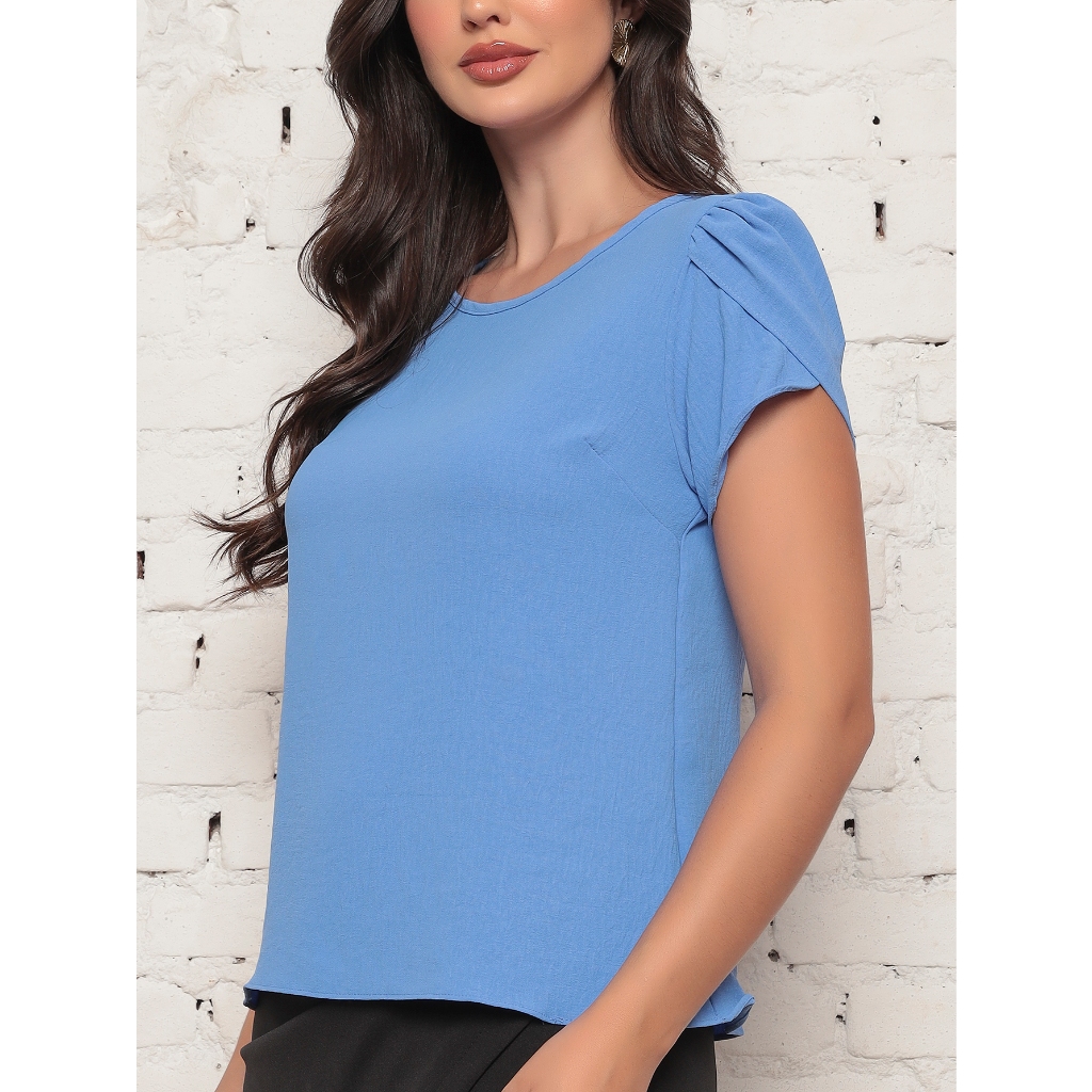 Blusa Feminina Lisa manga curta corte Barbado 2024