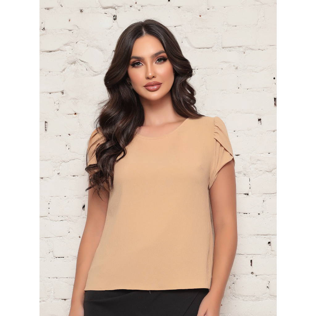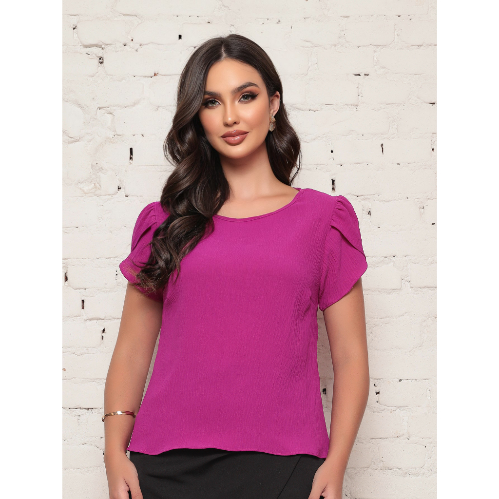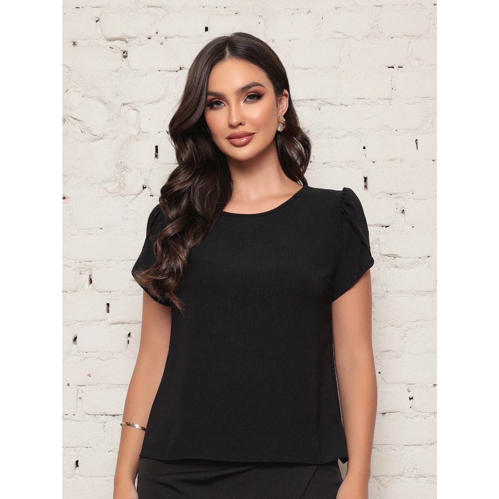 Blusa Feminina Lisa manga curta corte Barbado 2024