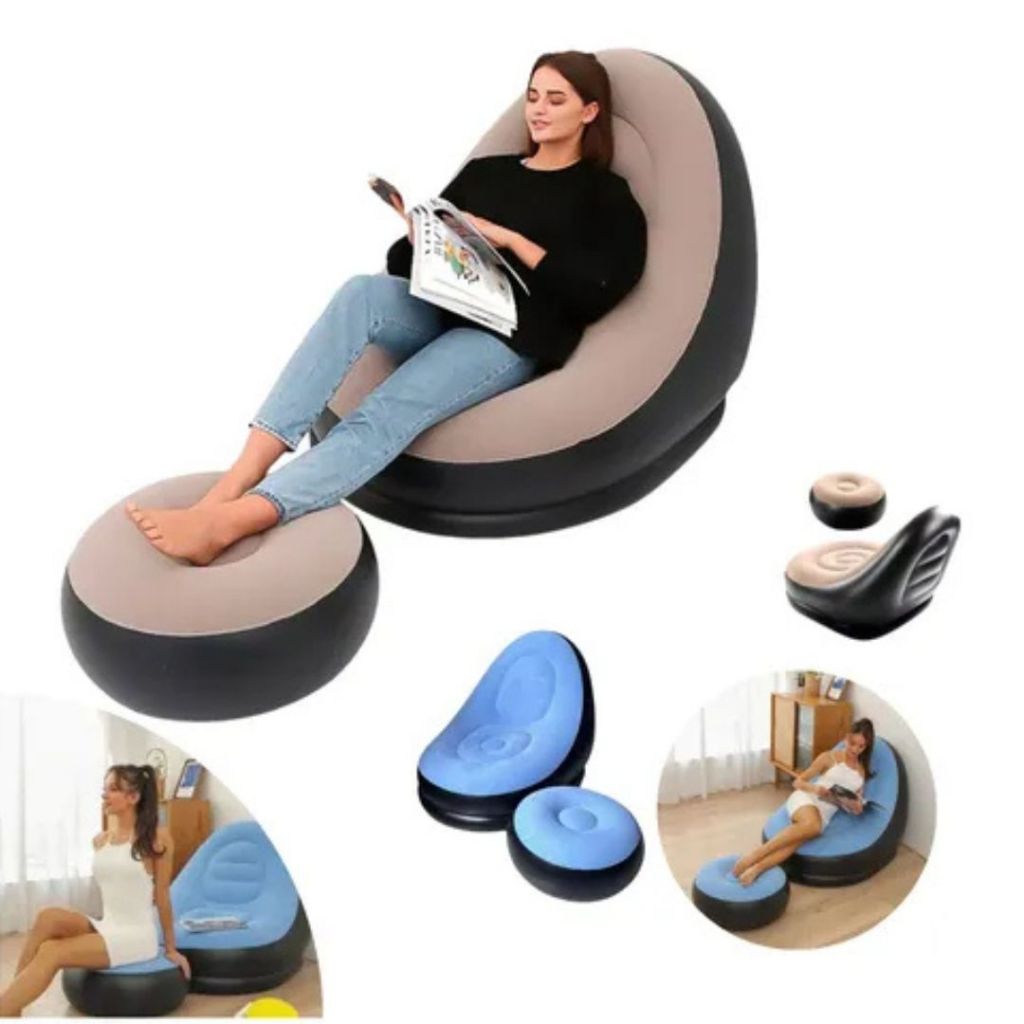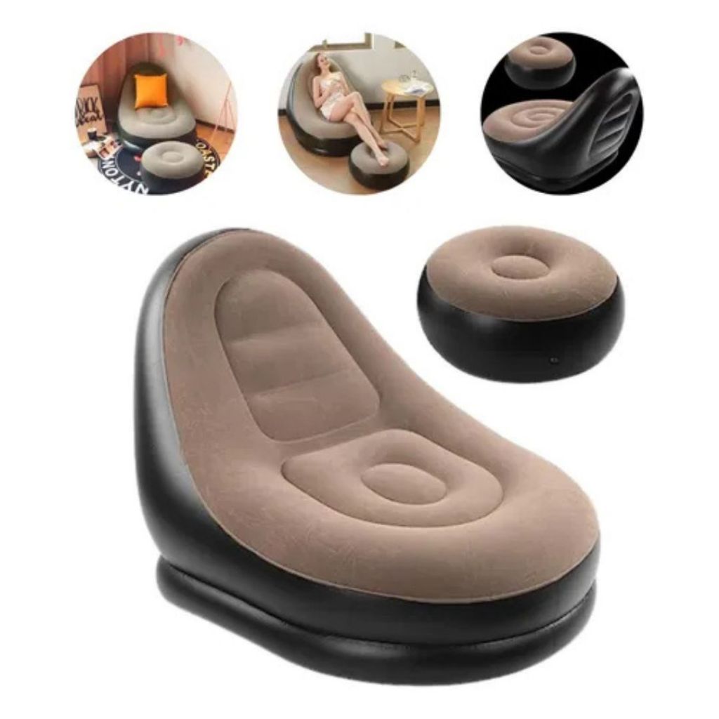 Conjunto Poltrona e Puff Inflável Portátil Descanso Preguiçoso Sofá