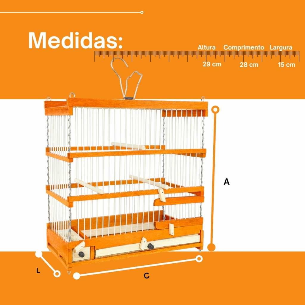 Gaiola De Madeira E Fibra Artesanal Para Pássaros Pequenos