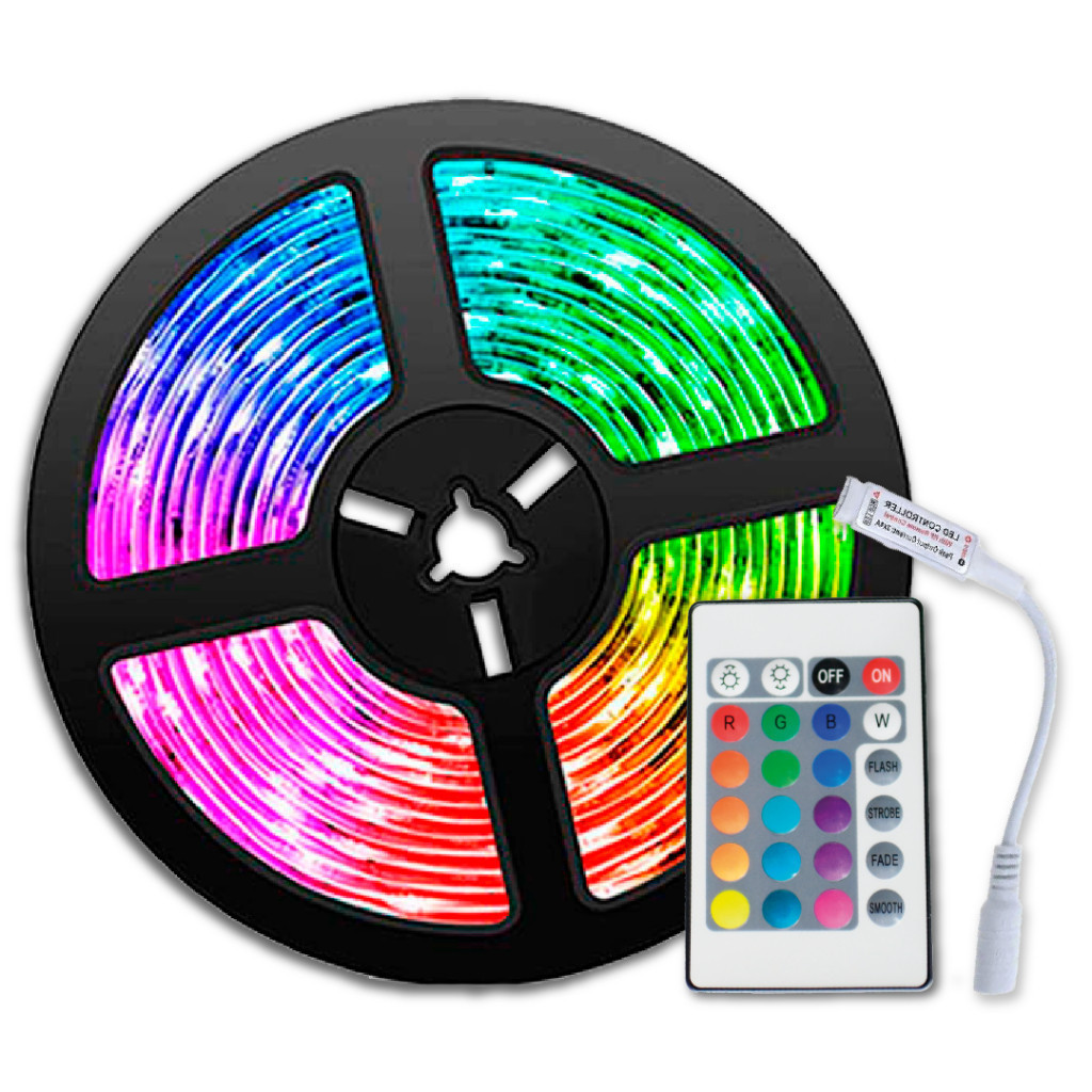 Fita LED 5050 SUPER LED ULTRA RGB 5M 12V 300 LEDS FITA + CONTOLE + FONTE | 16 CORES IP20