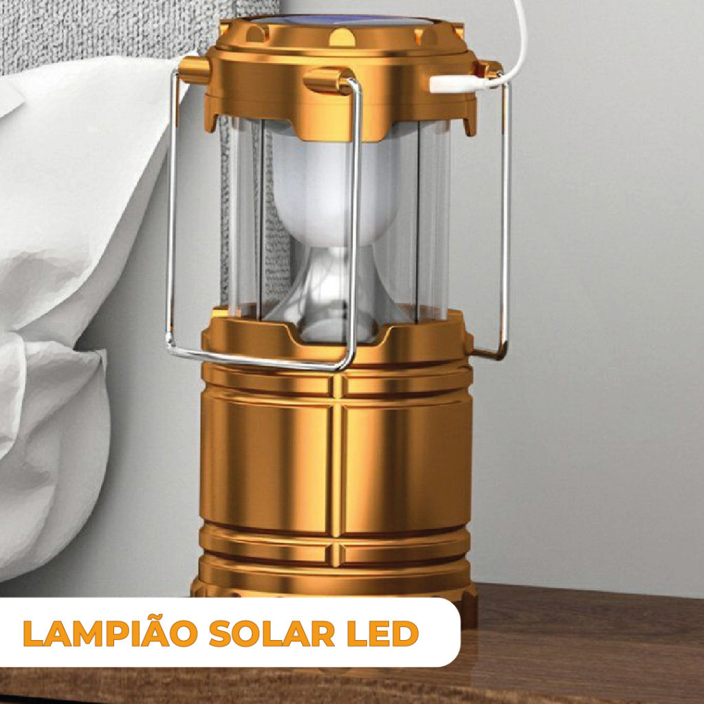 Lanterna Lampião com LED c/ Placa Solar embutida Recarregável usb e tomada Bivolt 2 Modelos