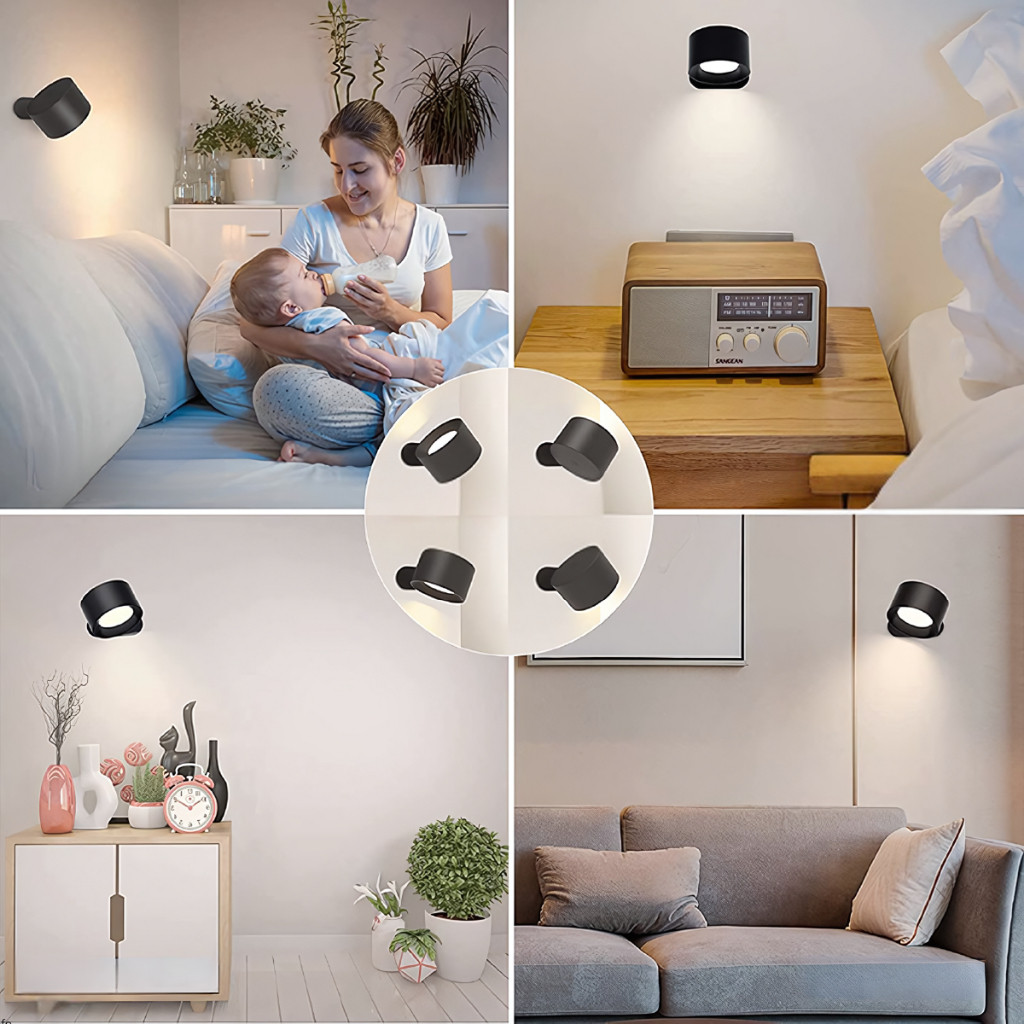 Luminária Spot Led 8W Arandela Cabeceira Luz de Parede 3 Tons de Luz Recarregável USB