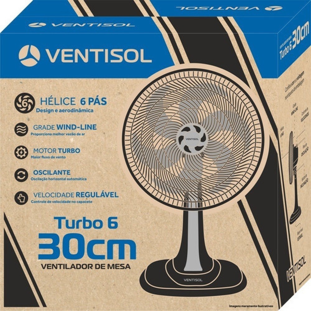 Ventilador Oscilante De Mesa Eco Turbo Ventisol 30cm 6 Pás
