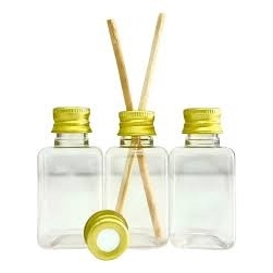 50 Frascos Pet 42ml Quadradinhos com tampa de metal e varetas