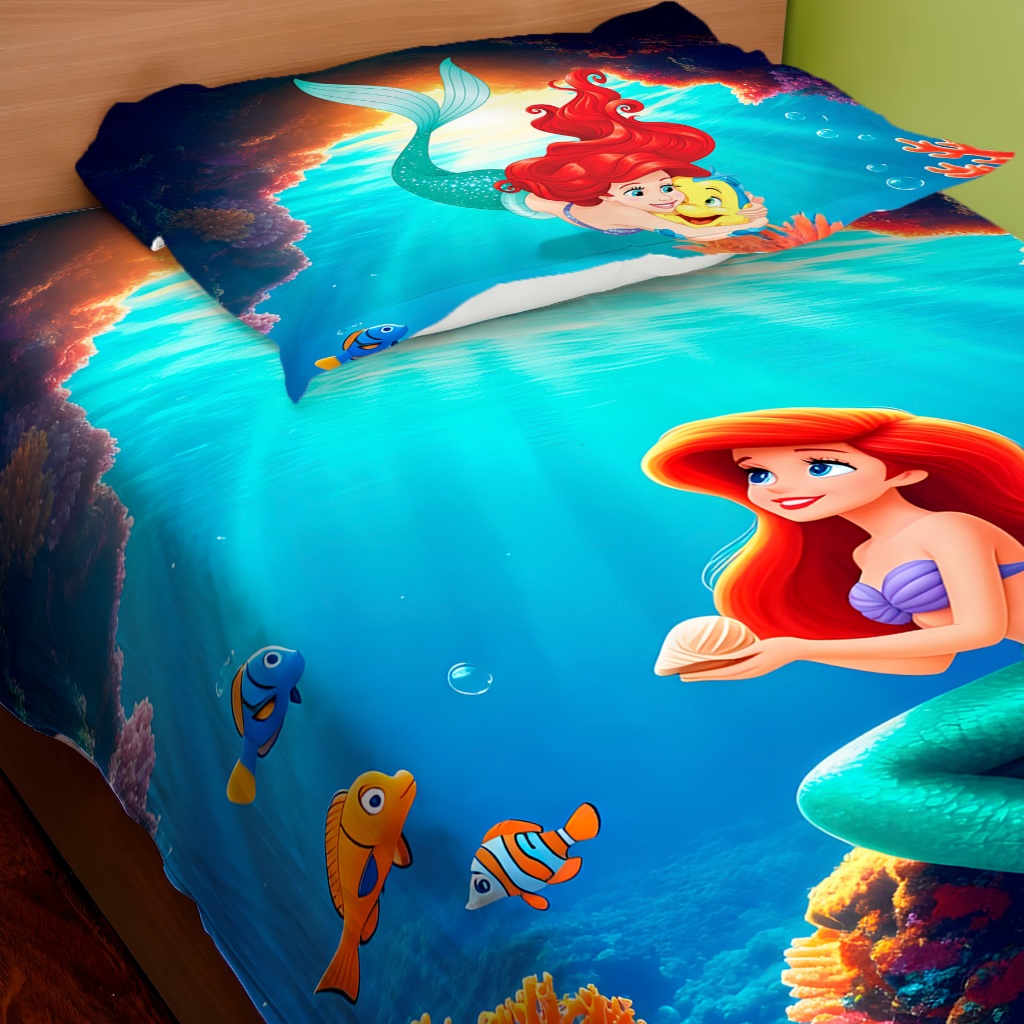 Jogo de Cama Infantil A Pequena Sereia – Solteiro | Encanto e Magia no Fundo do Mar
