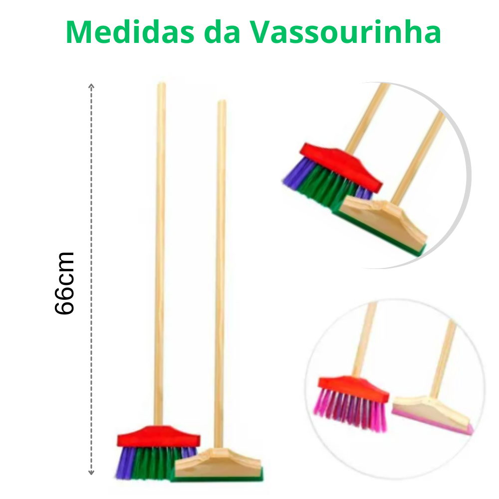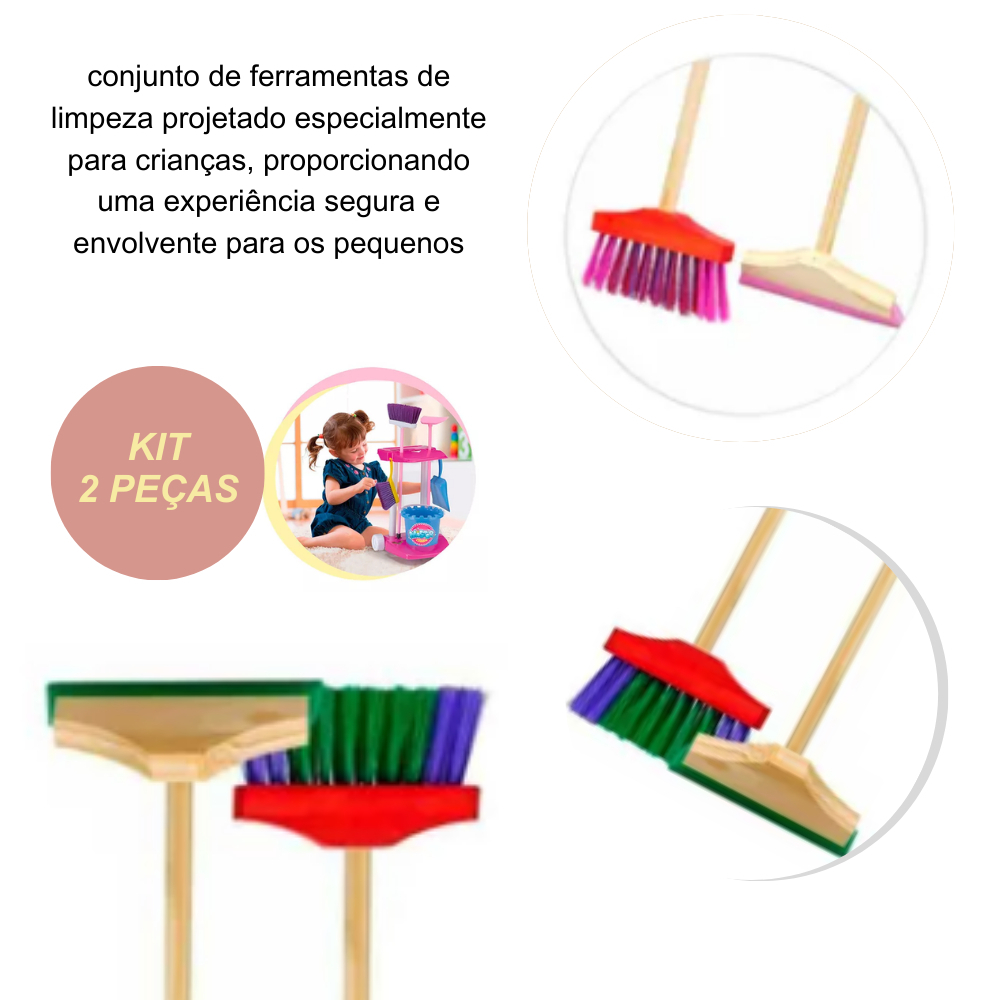 Kit Vassoura e Rodo Infantil Kit Com 2 Peças Tamanho Pequeno Menino e Menina Cores Neutras