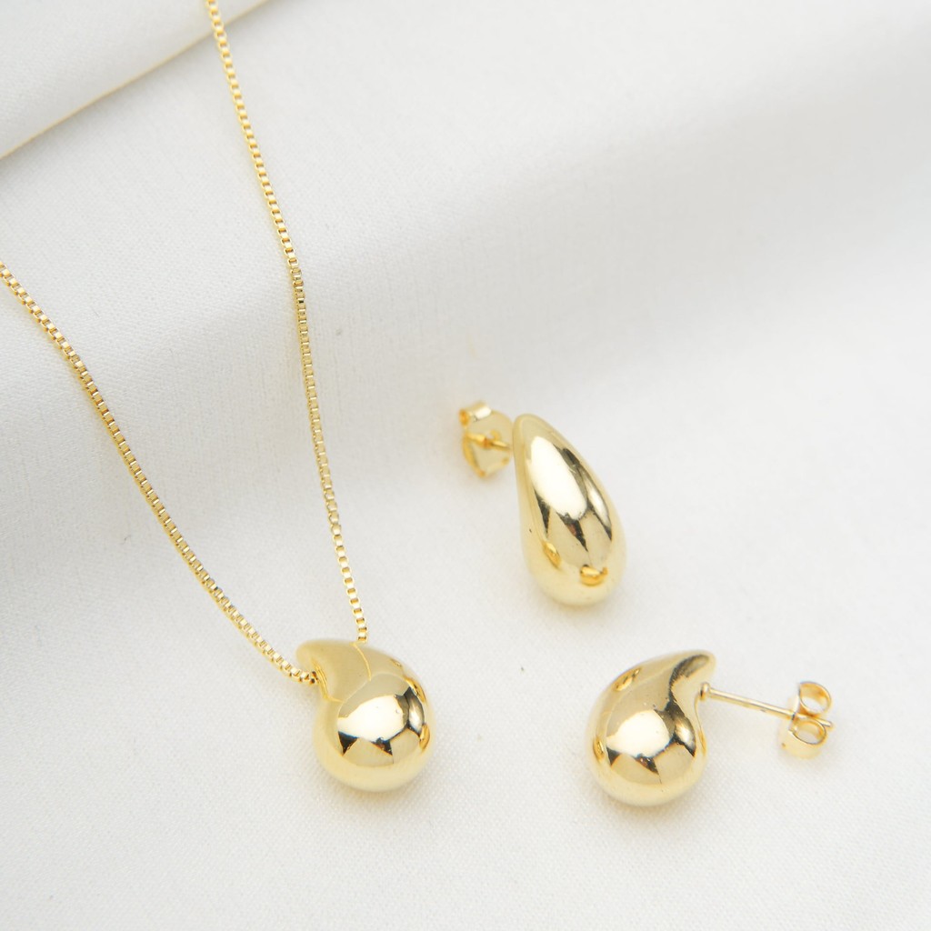 Conjunto Dourado Gota Bold Virgula Banhado a Ouro 18K - D France Semijóias