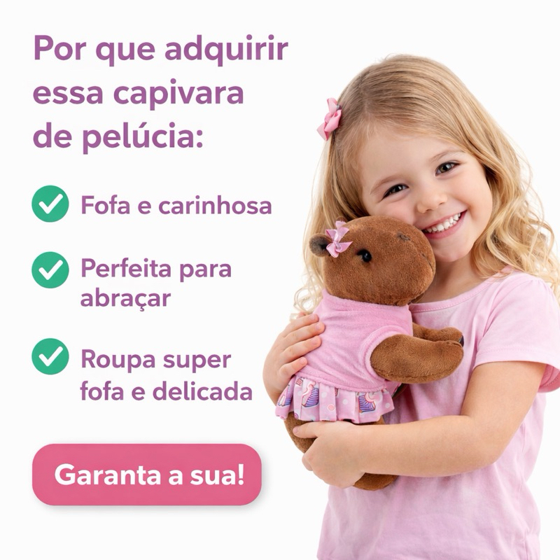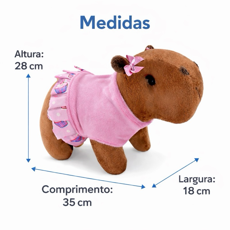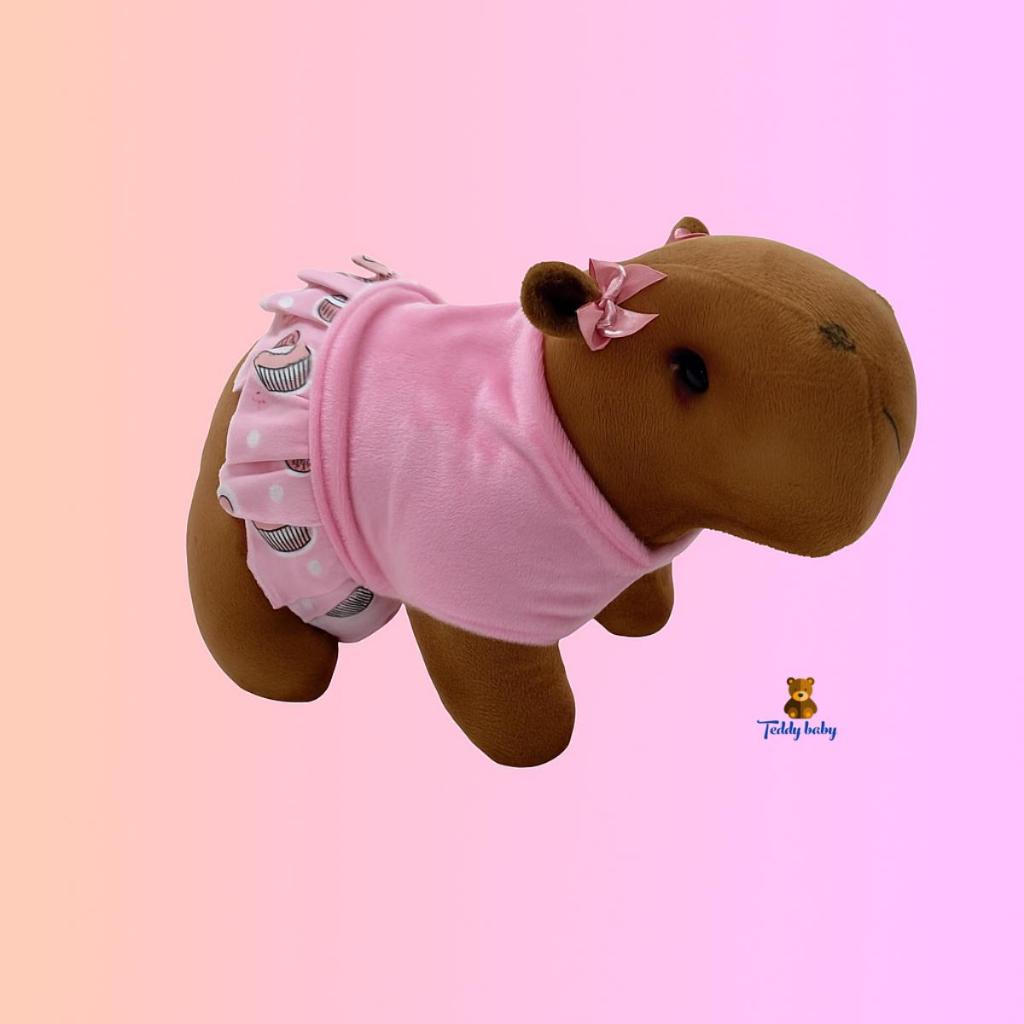 Capivara de Pelúcia 35cm com Roupa Filó Infantil Bicho Pelúcia Decorativo Super Macio para Presente