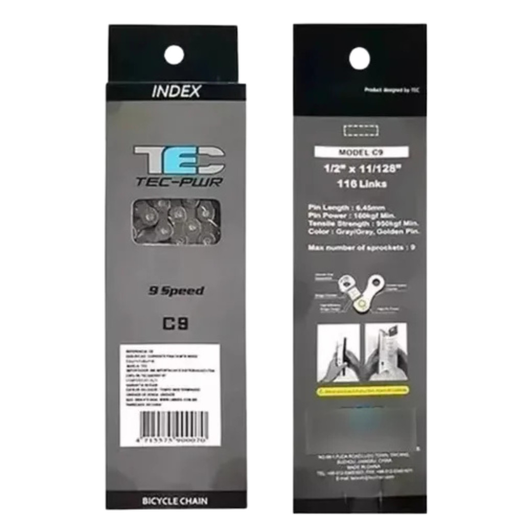Corrente 9 Velocidades Tec Pwr Index 116 Elos Compatível Shimano Bicicleta 9v MTB Speed