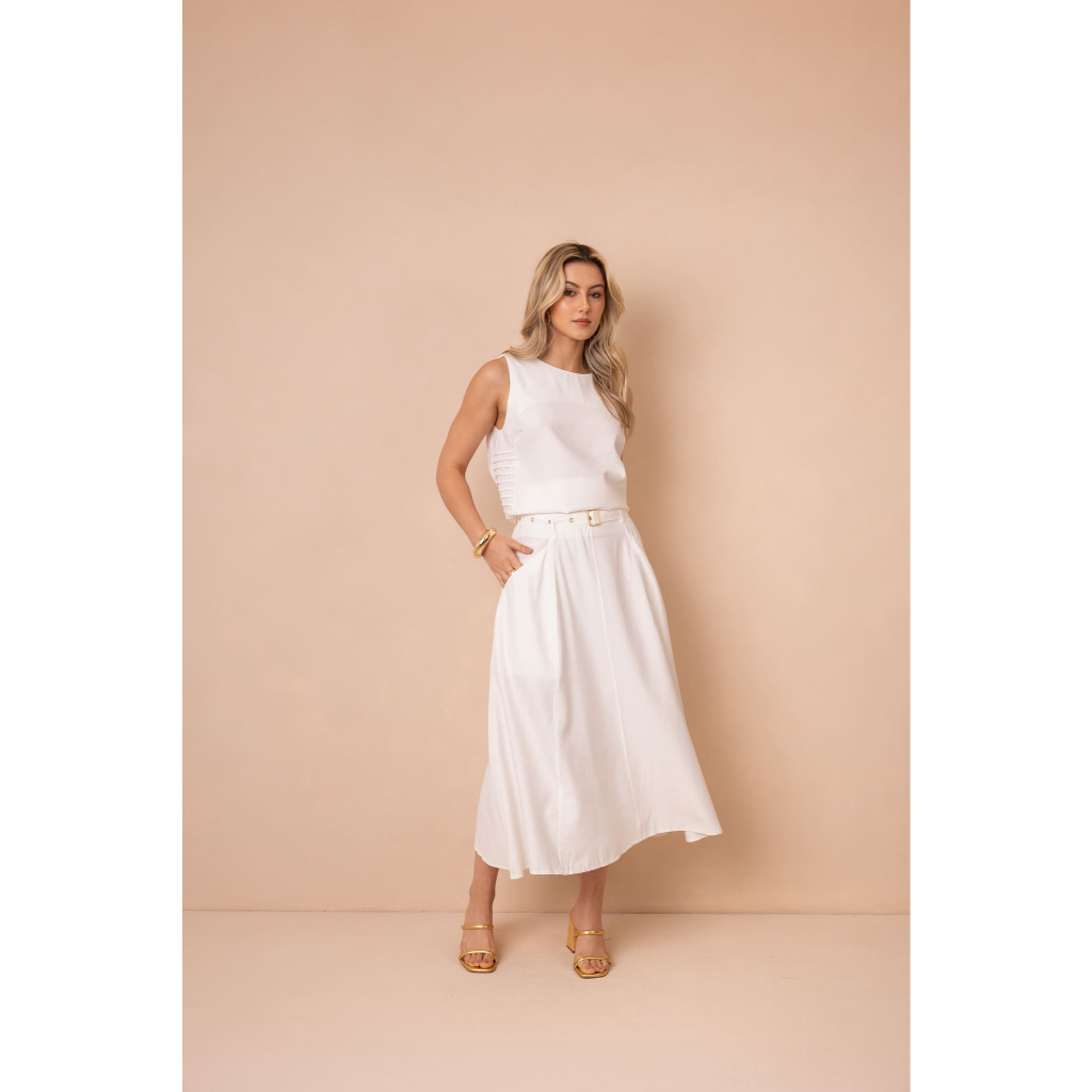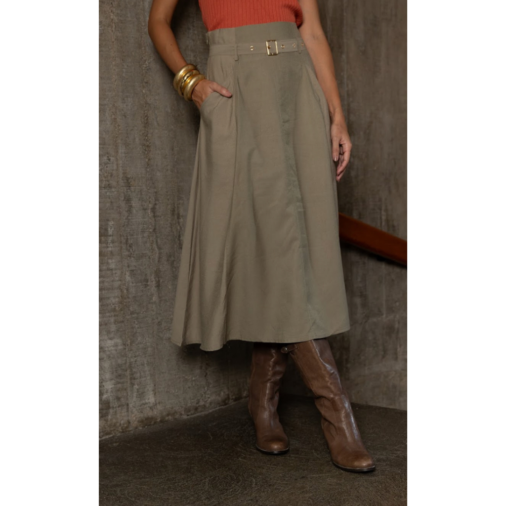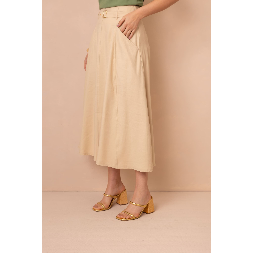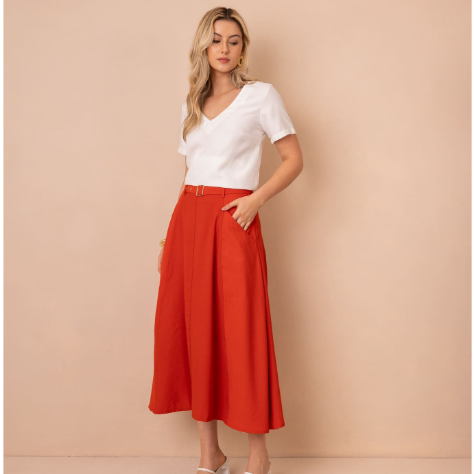Saia Longa Feminina Cindy Evasê com Cinto Social Elegante Moda Verão Lançamento Tendência Natal