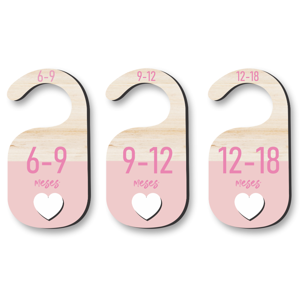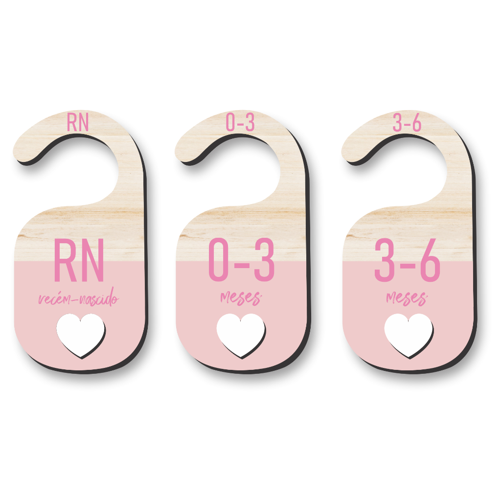 Separador de Cabide Bebê Coração Vazado Rosa MDF | Organização RN a 18 Meses | Closet Infantil