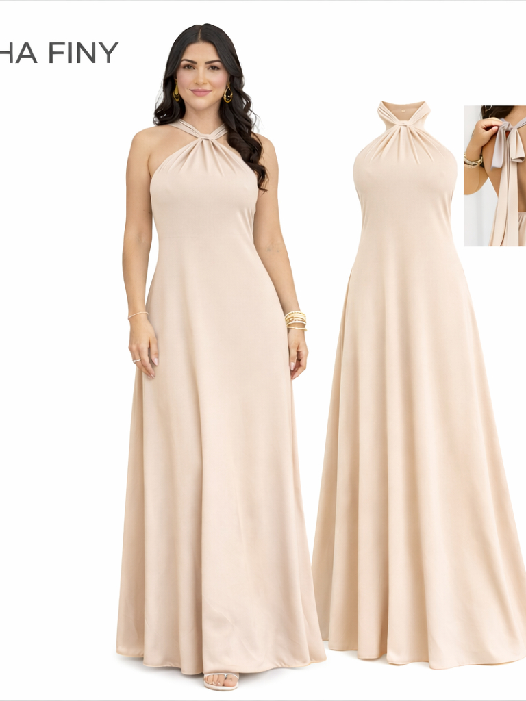 LINHA FINY VESTIDO LONGO ELEGANTE TECIDO CREPE DUNAS ISIS 001