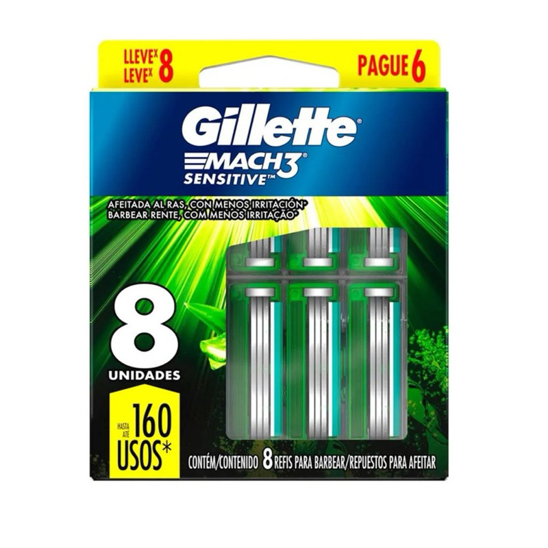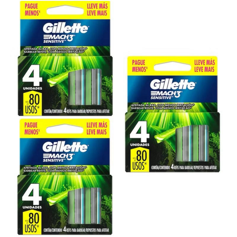 Laminas Para Aparelho De Barbear Gillette Mach 3 Sensitive 12 Unidades