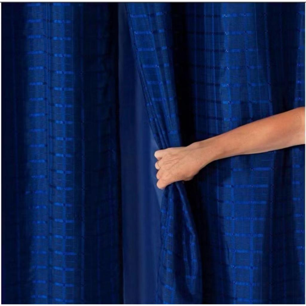 Cortina 4,00 x 2,50 Voil Xadrez C/ Forro Microfibra Para Sala Ou Quarto