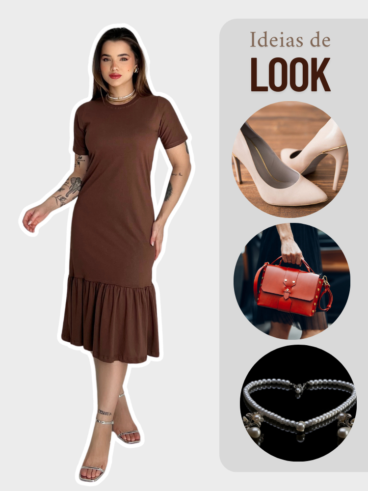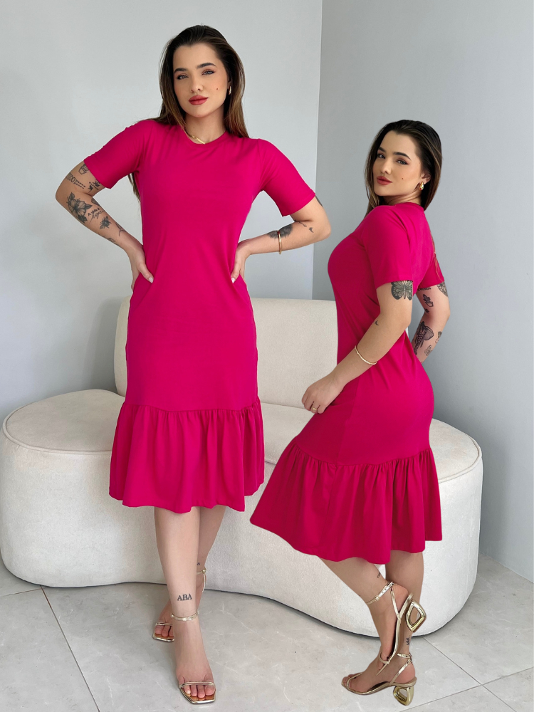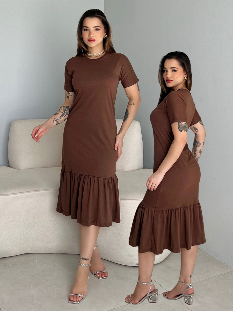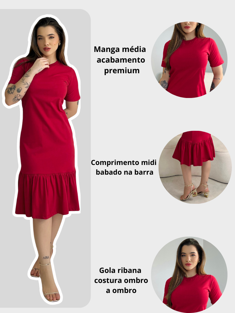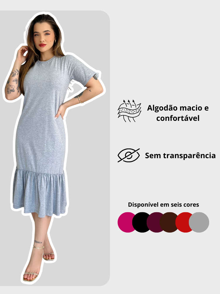 Vestidos Midi Feminino Soltinho Moda Evangélica Manga Curta Com Babado Malha Algodão Casual