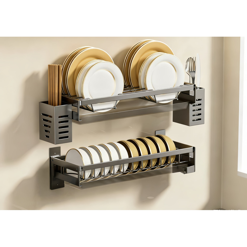 Escorredor De Louças Para Parede Em Aço Inoxidável 2 Andares