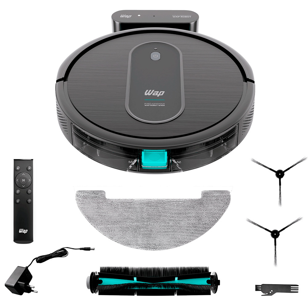 Aspirador de Pó Robô ROBOT WAP W400 3 em 1, Automático, 300ml, Compatível com Assistentes de Voz, 30W 10,8VDC Bivolt