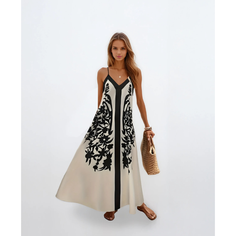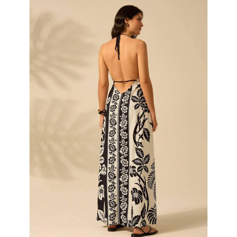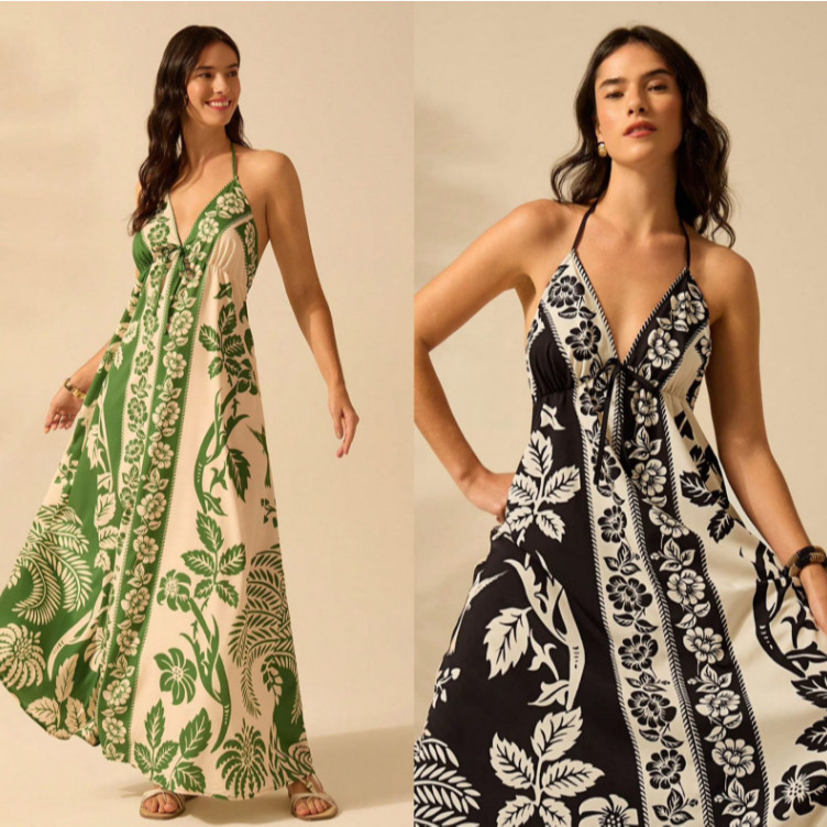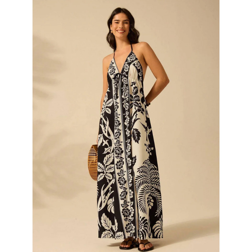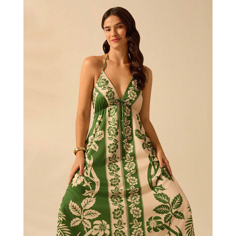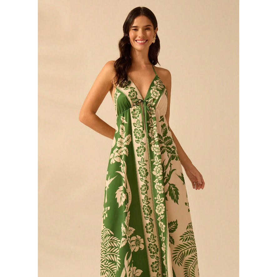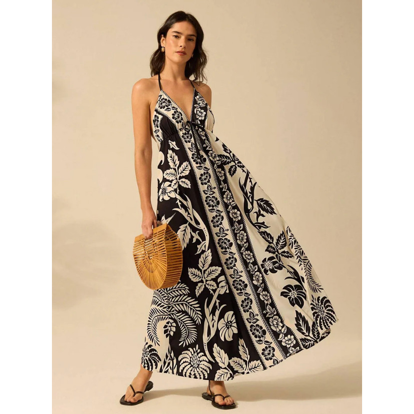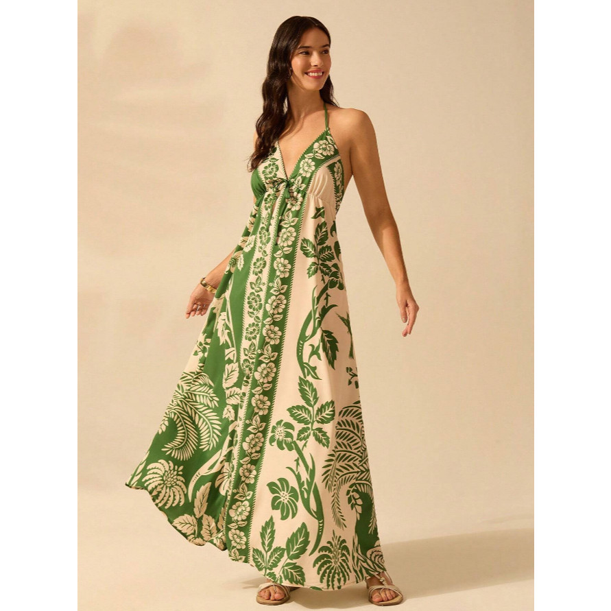 Vestido de Praia de Verão Casual com Estampa de Flores Estilo Boêmio Tropical, Alças Finas e Cordão para Mulheres