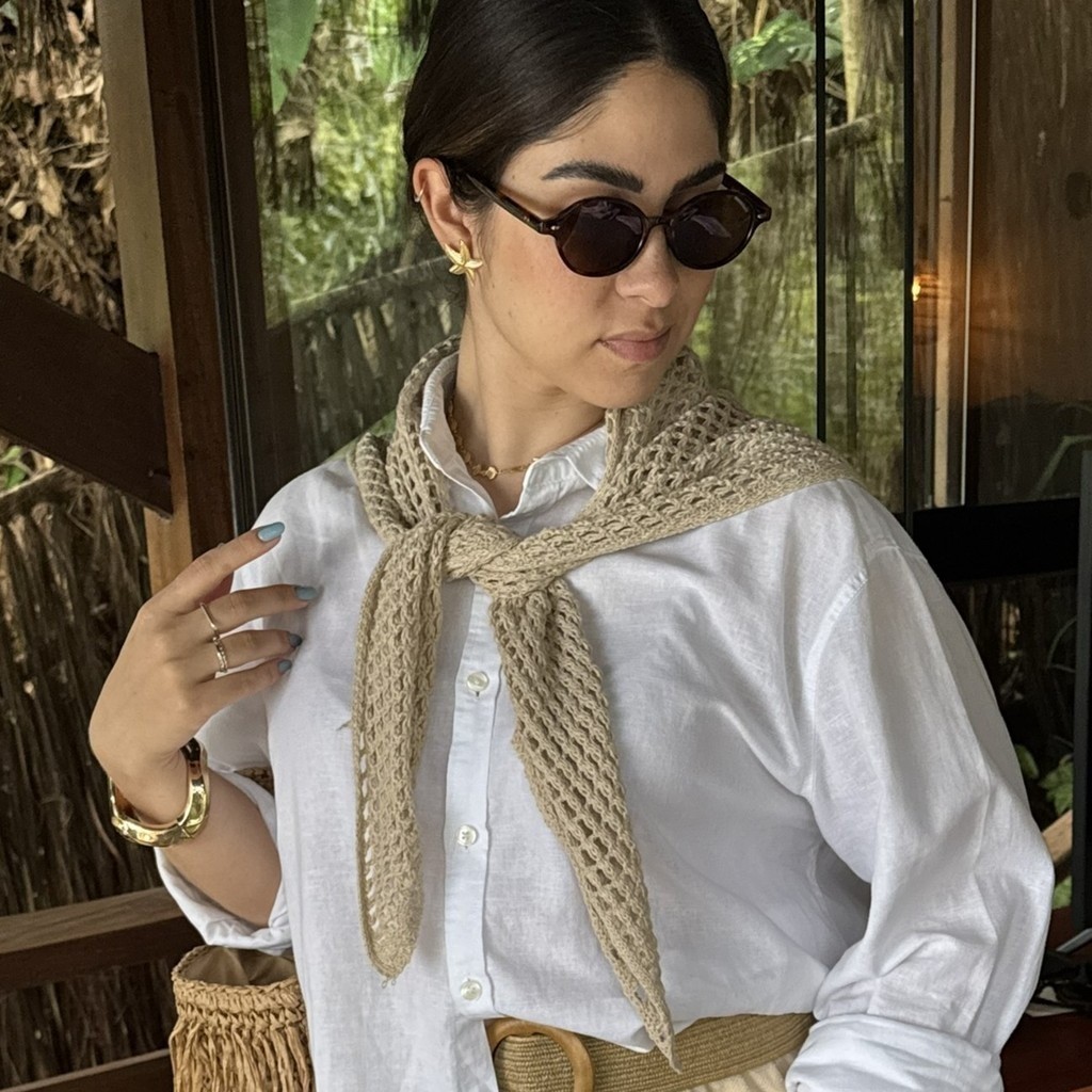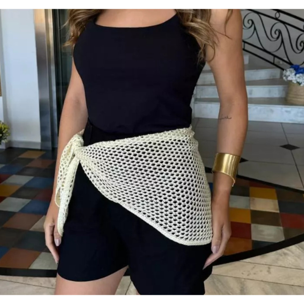 Lenço Bandana de Tricot Feminina Estilo Crochê Artesanal Verão Tendencia
