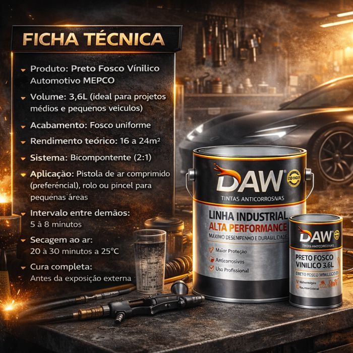 Tinta Automotiva Preto Fosco Vinílico Mepco 3,6L – Acabamento Profissional e Alta Resistência
