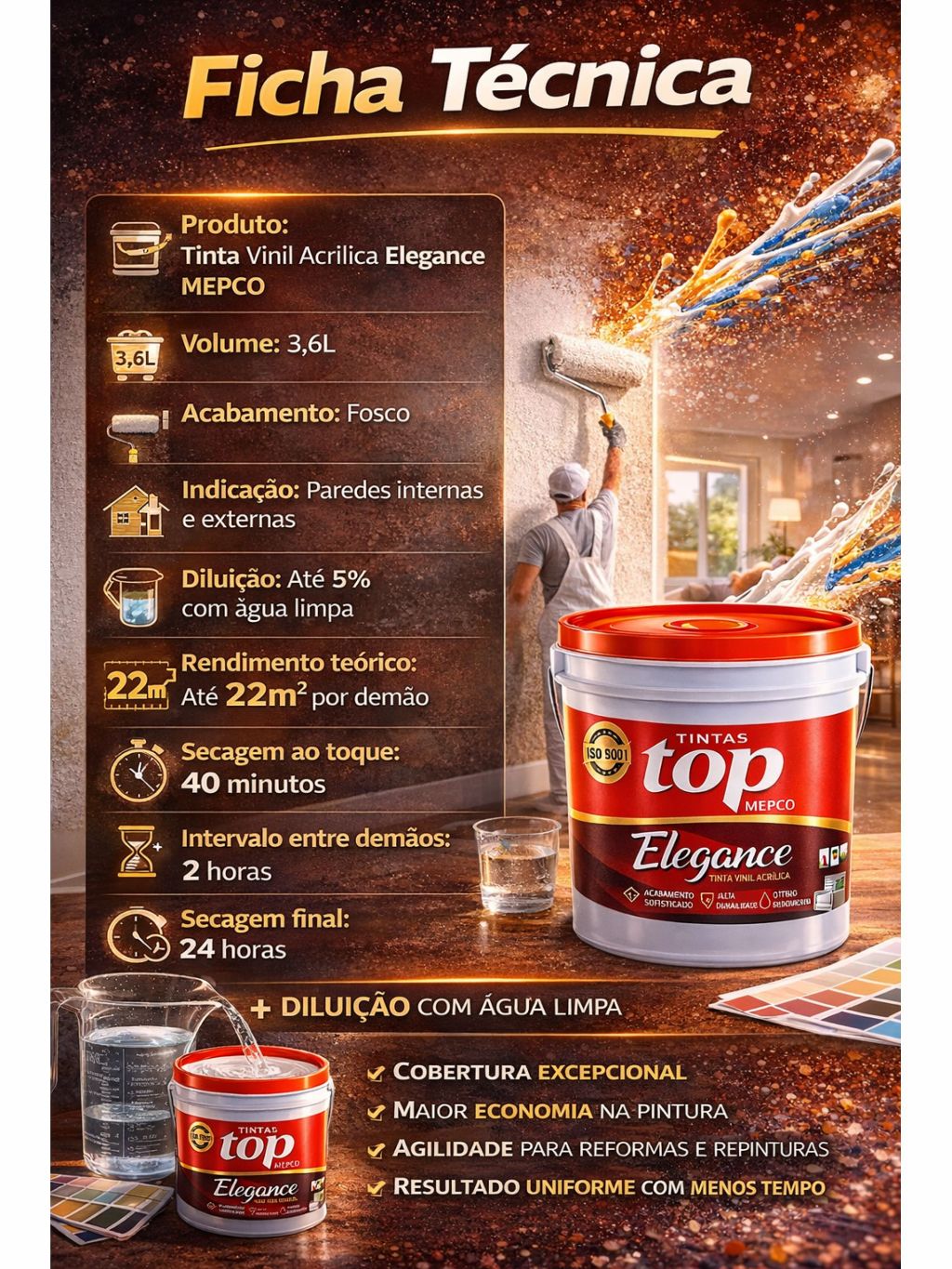 Tinta Vinílica Elegance 3,6L – Proteção Total Antimofo e Cobertura Perfeita para Paredes