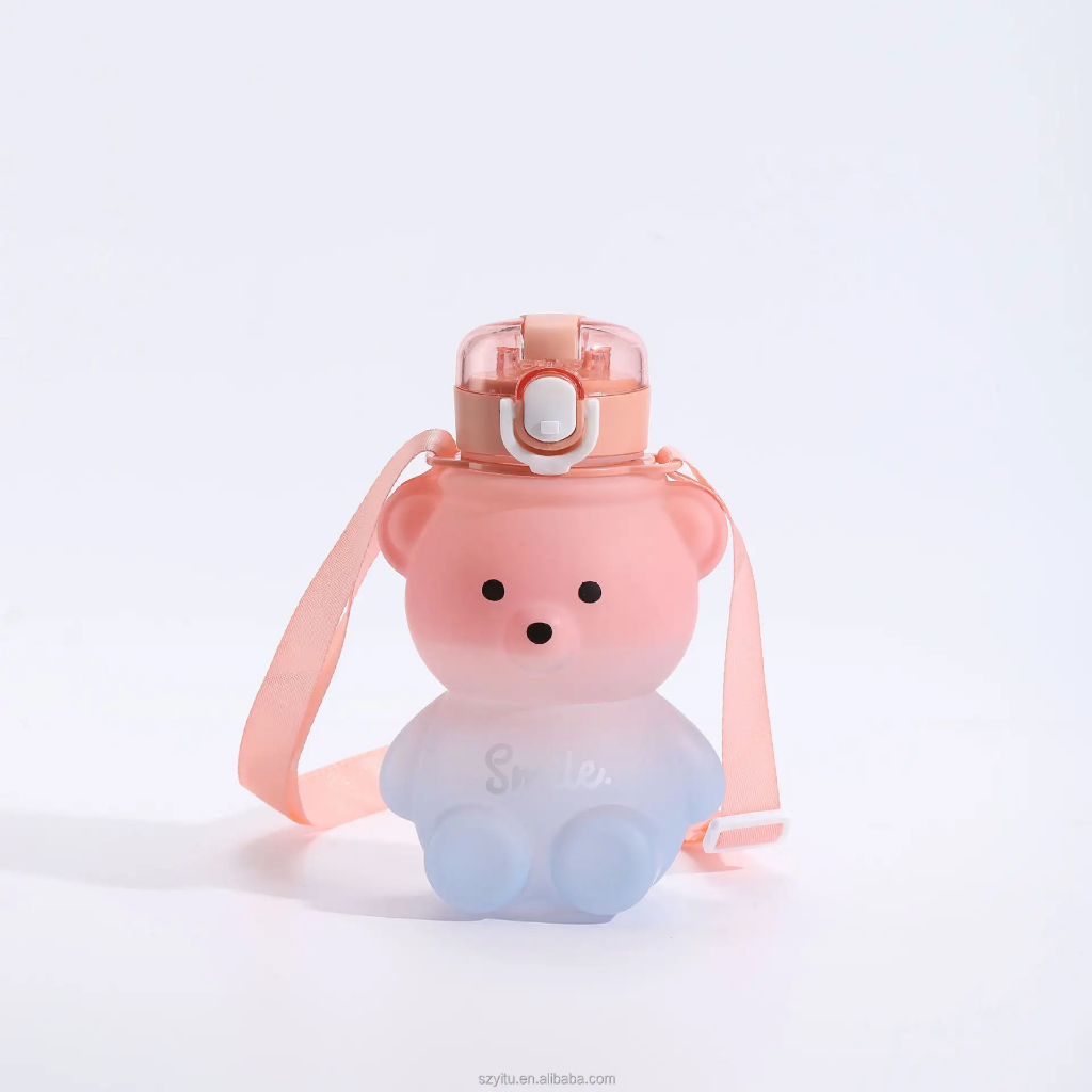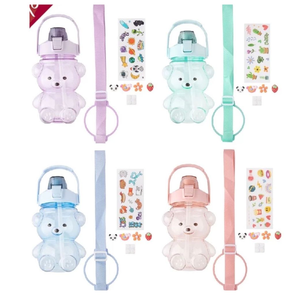 Garrafa Infantil Urso Com Alça e Canudo e Adesivo 1000ml