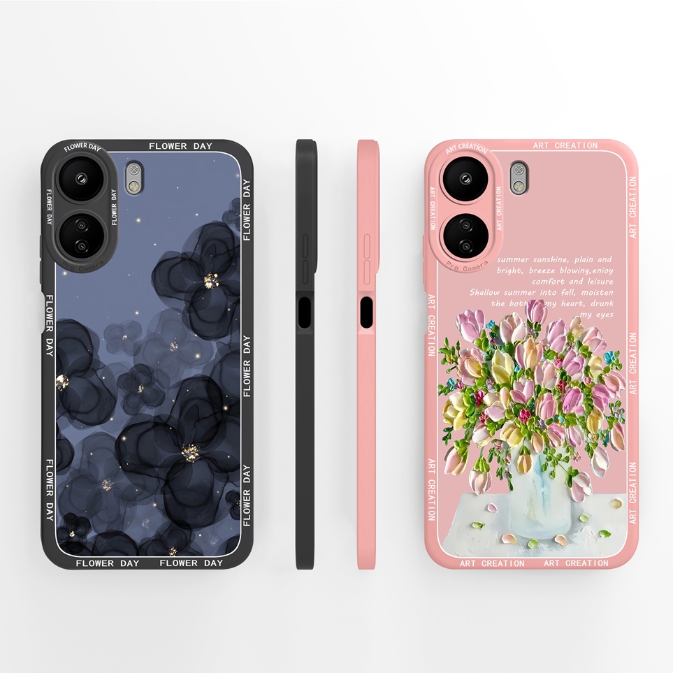Para Xiaomi Redmi 13C 12C 10C 4G Capa De Silicone Padrão De Flor Macio Prevenção De Queda Redmi13C 4G 12C 10 C Caixa De Telefone
