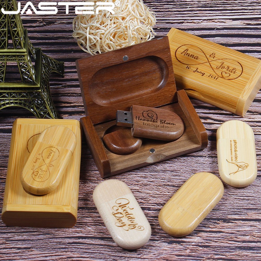 JASTER (1PCS Logotipo Personalizado Gratuito) USB 2.0 Flash Drive 128GB Madeira Com Caixa Memory Stick 64GB Pen Drives P